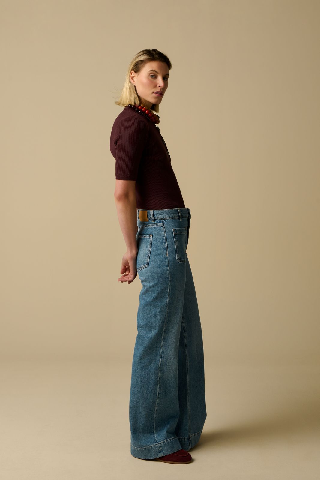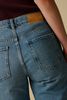 Blauwe high waist jeans met opgestikte zakken van Sissy-Boy. De denim broek heeft een hoge taille, een 4-pocket model, uitlopende broekspijpen en een knoop-en ritssluiting. Daarnaast heeft het een denim blauwe kleur met opgestikte zakken aan de voorzijde. Materiaal: 100% katoen. Het model heeft een lengte van 1,74 m en draagt maat 27.