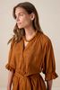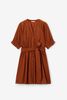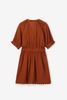 Bruine jurk met embroidery van Sissy-Boy. De jurk heeft korte pofmouwen, een V-hals, een mini-lengte, een knoopsluiting en een ceintuur in de taille. Daarnaast heeft het een roest bruine kleur met een bloemen embroidery bij de halslijn. Materiaal: 100% katoen. Het model heeft een lengte van 1,72 m en draagt maat S.