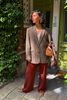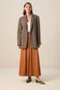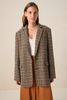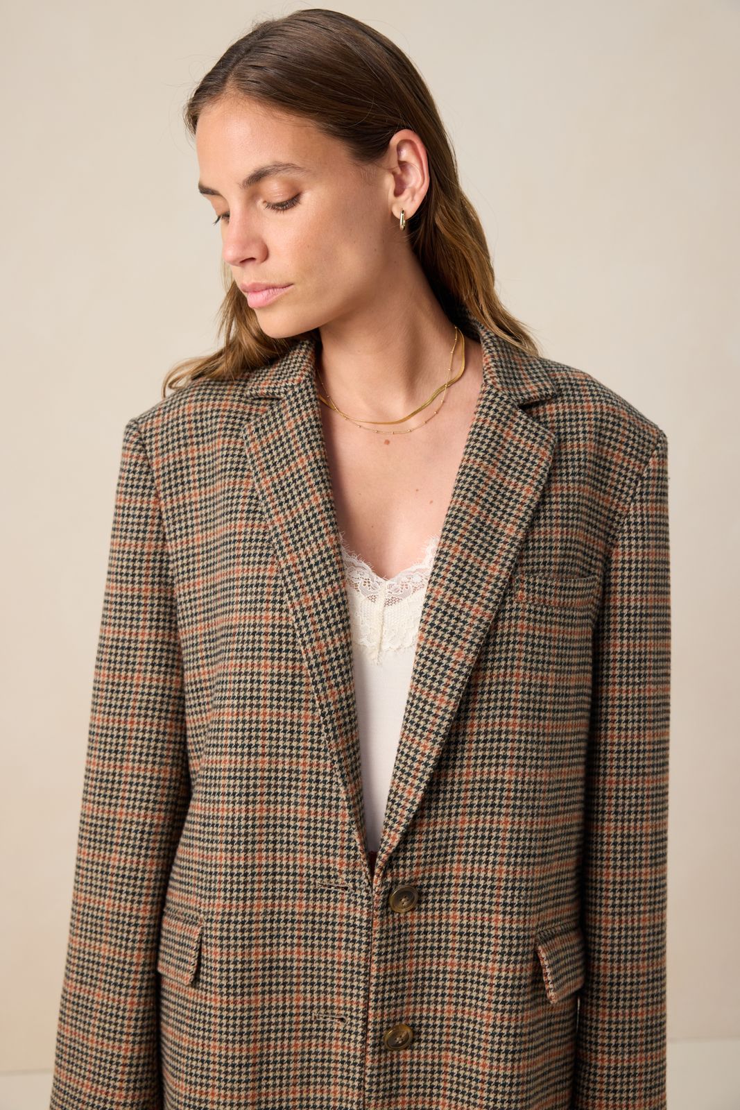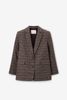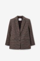 Donkerbruine wollen blazer van Sissy-Boy. De blazer heeft lange mouwen, een reverskraag, gevoerd, een knoopsluiting en een relaxed fit. Verder heeft de blazer een donkerbruine kleur, een all-over ruiten patroon met rode details. Het model heeft een lengte van 1,72 m en draagt maat S. Materiaal: 68% polyester, 29% wol, 2% acryl, 1% viscose.