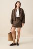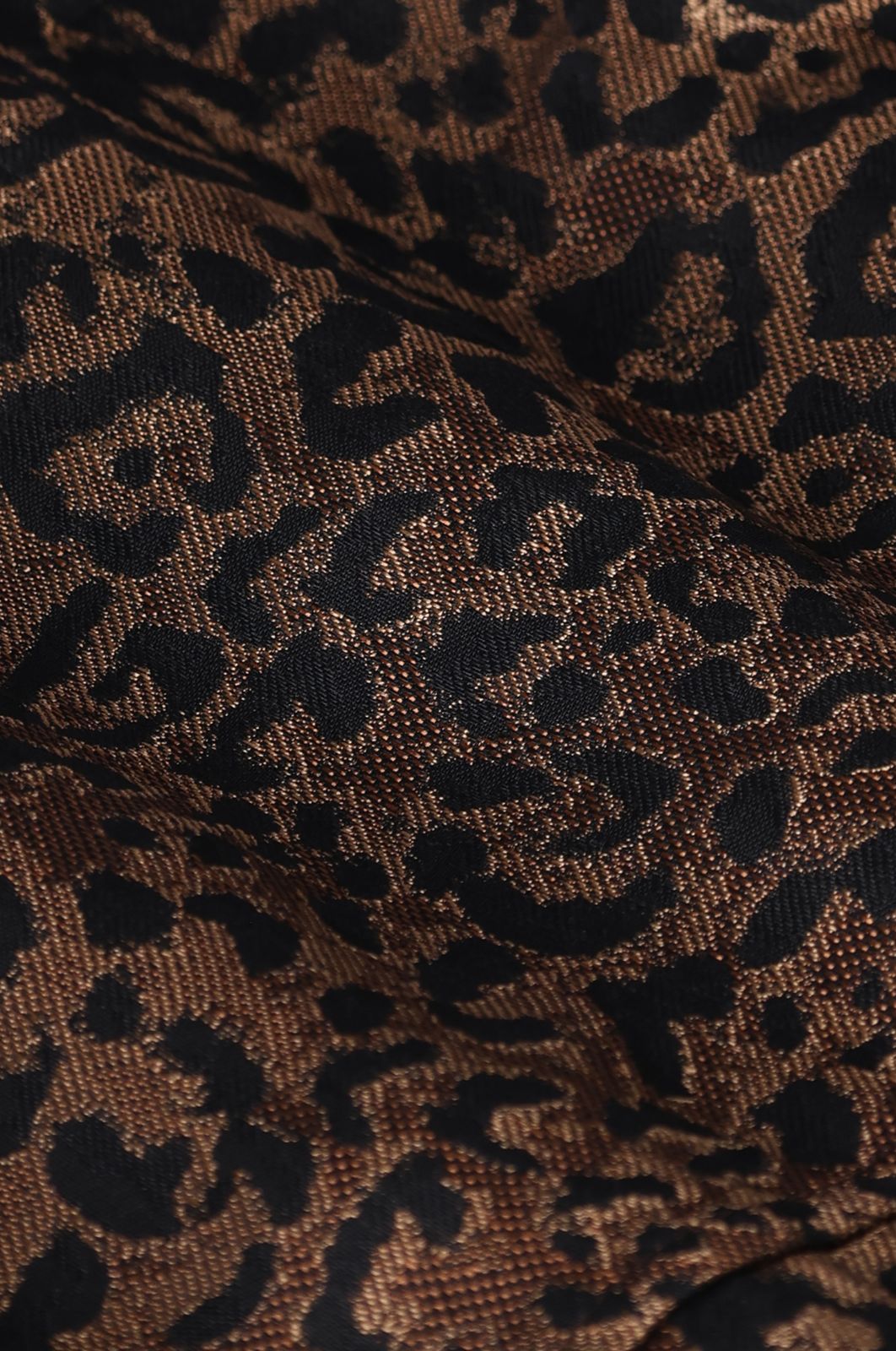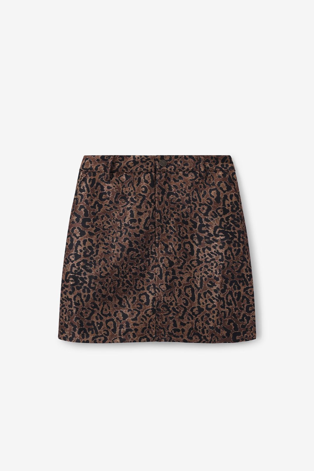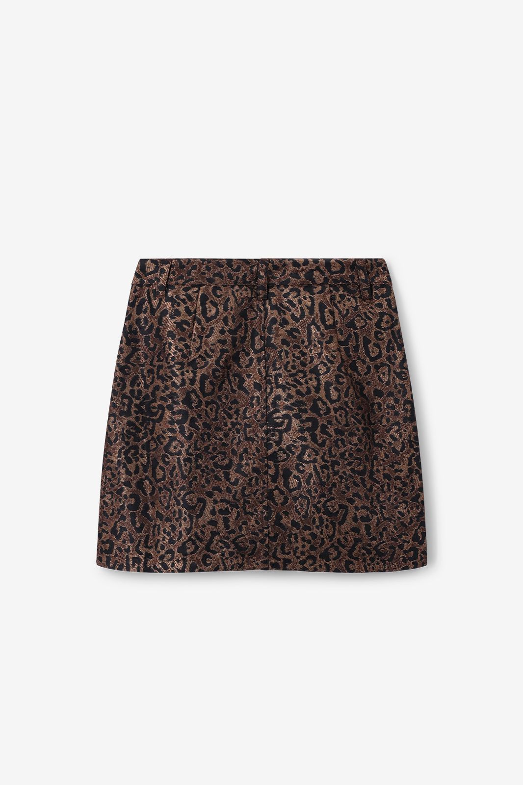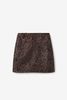Donkerbruine jacquard rok met leopard print van Sissy-Boy. De rok heeft een hoge taille, een kort model en een knoop-en ritssluiting. Verder heeft de rok een all-over ingeweven jacquard leopard print. Het model heeft een lengte van 1,74 m en draagt maat S. Materiaal: 100% polyester.