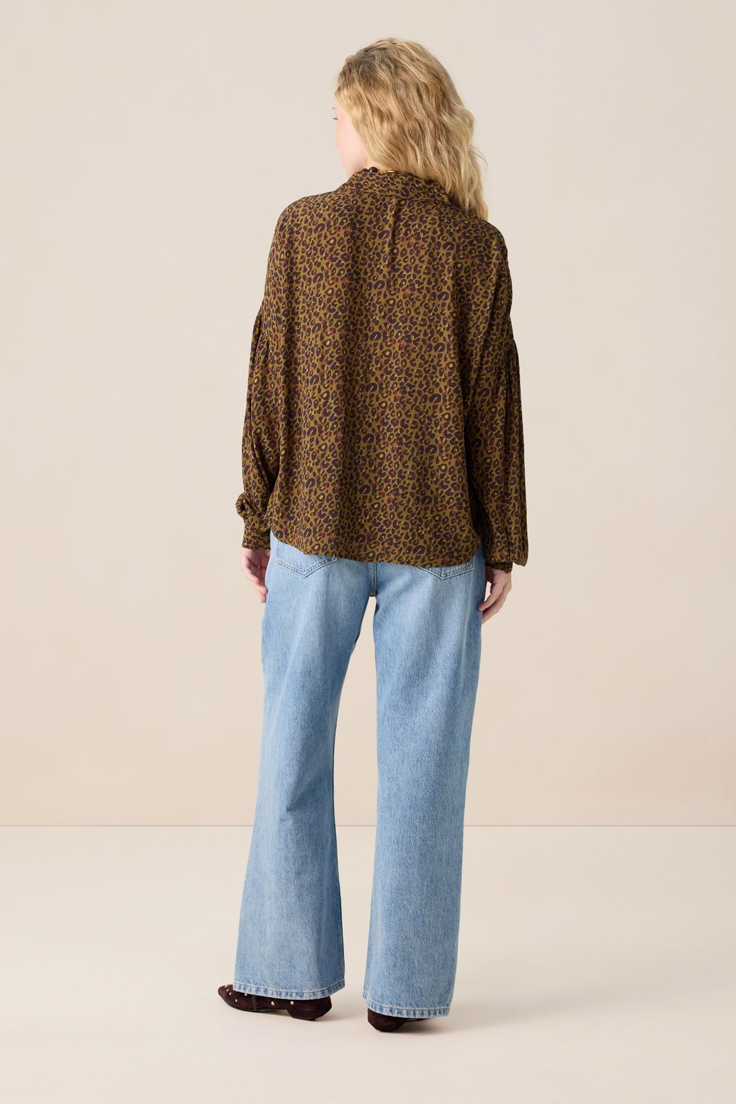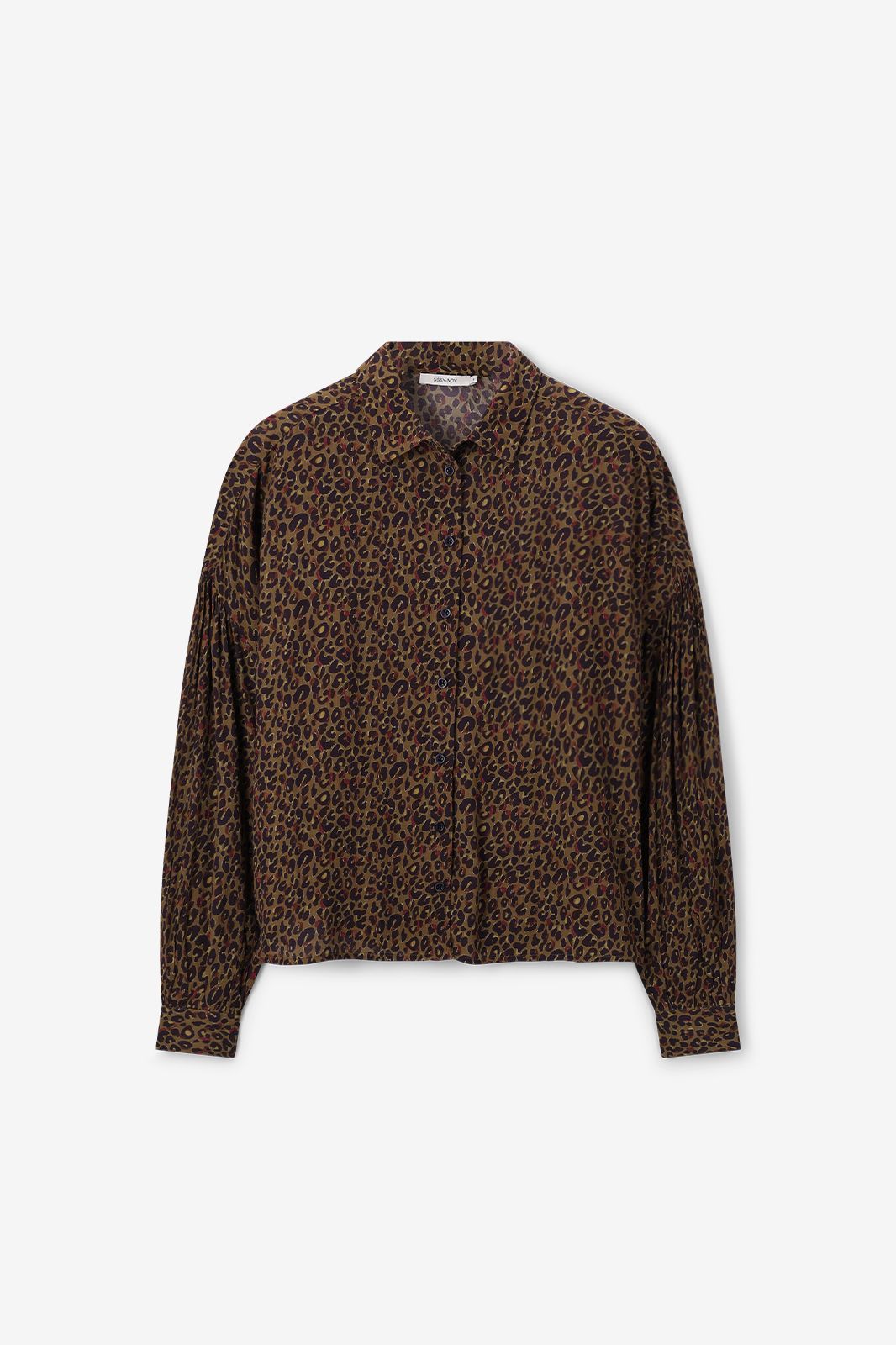 Donkergroene blouse met leopard print van Sissy-Boy. De blouse heeft lange pofmouwen, een knoopsluiting, een kraag, verlaagde schouders en een relaxed fit. Verder heeft de blouse een donkergroene kleur met een all- over leopard print. Het model heeft een lengte van 1,71 m en draagt maat S. Materiaal: 100% viscose.