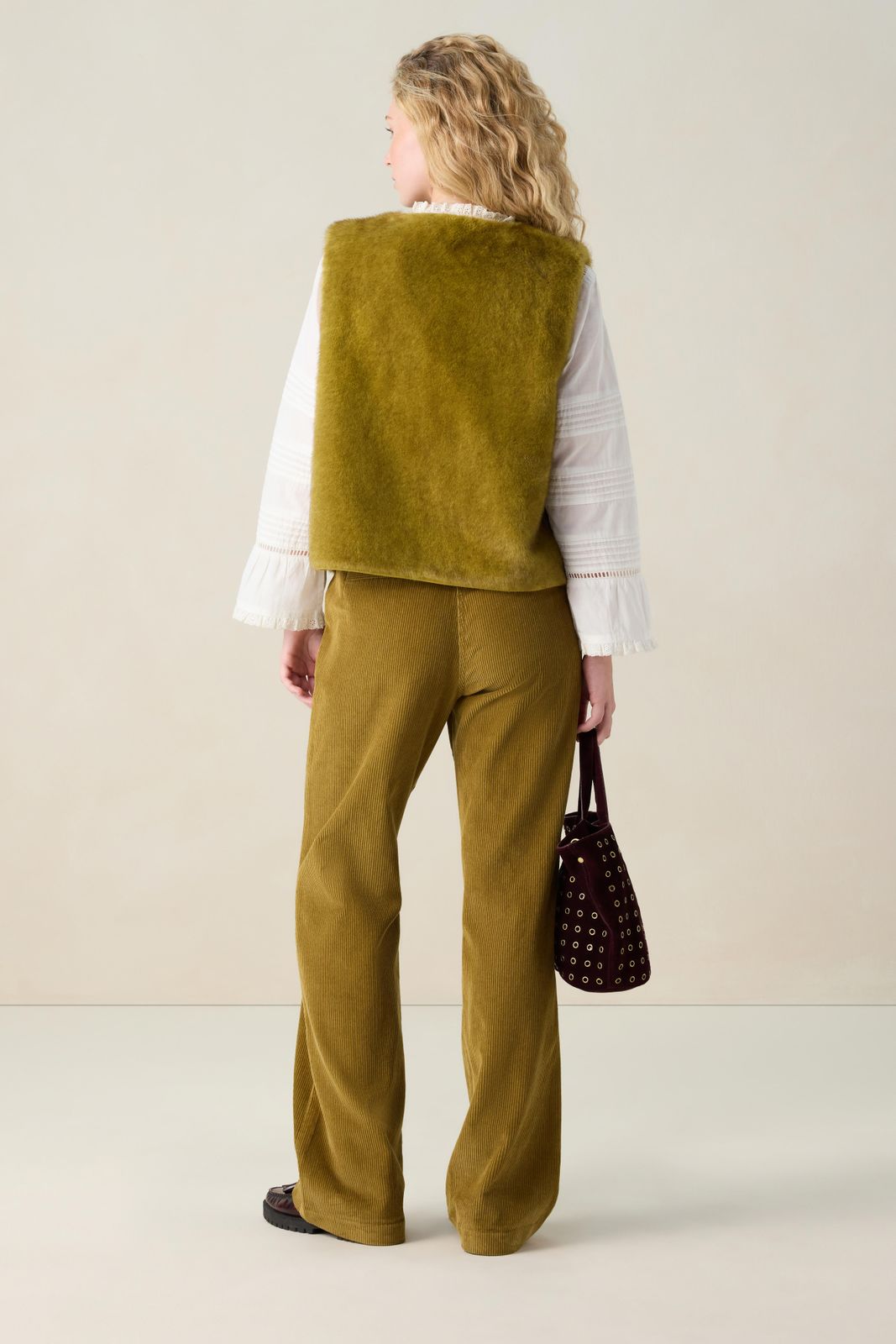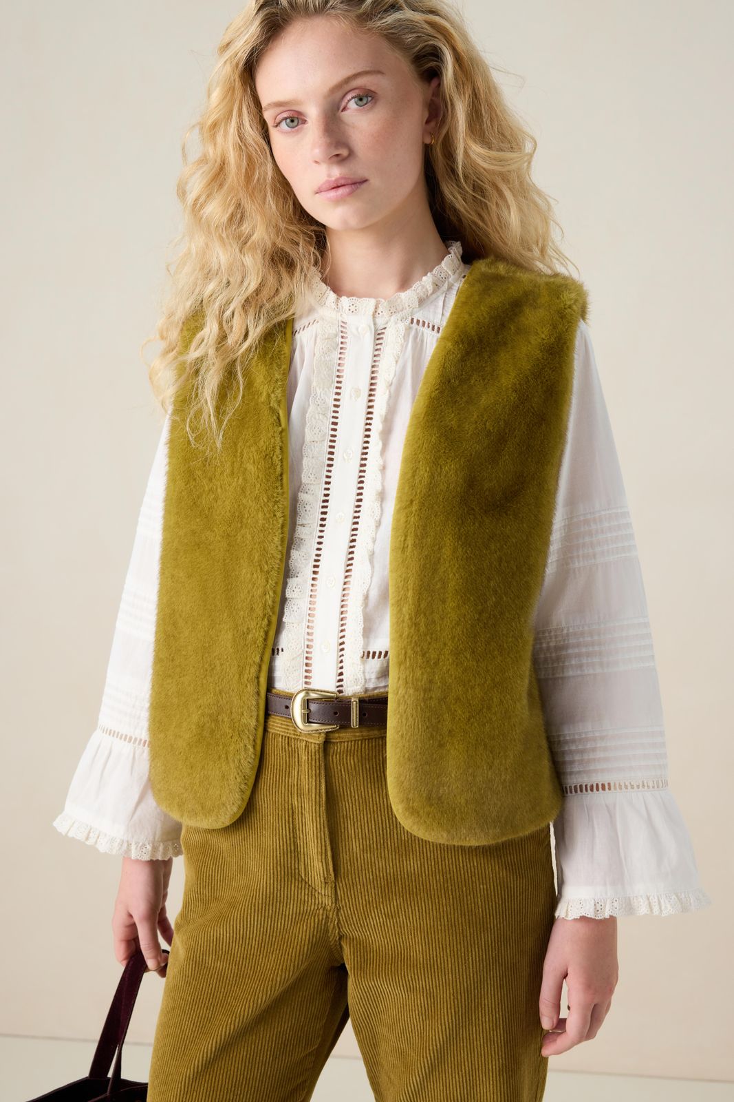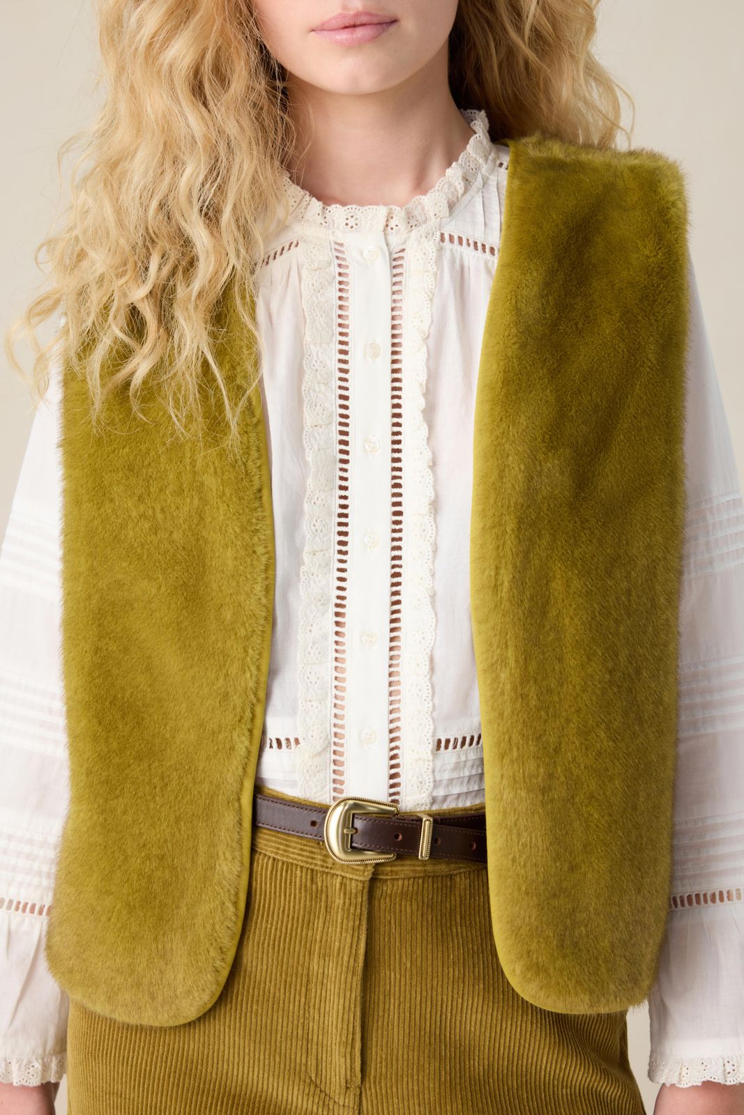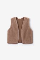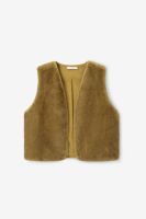 Donkergroen faux fur gilet van Sissy-Boy. Het gilet is gevoerd, mouwloos en heeft geen sluiting. Daarnaast heeft het een groene kleur met een faux fur kwaliteit aan de buitenzijde. Het model heeft een lengte van 1,71 m en draagt maat S. Materiaal 100% polyester.