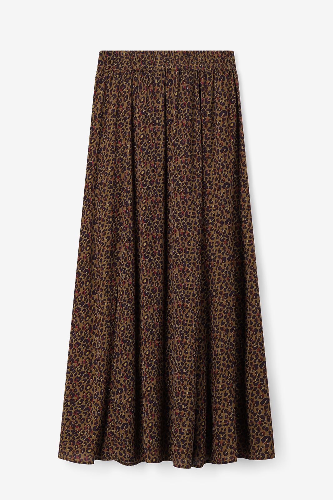 Donkergroene maxi rok met leopard print van Sissy-Boy. De rok heeft een hoge taille met een elastische band en een lange maxi-lengte. Verder heeft de rok een groene kleur met een all-over leopard print. Het model heeft een lengte van 1,71 m en draagt maat S. Materiaal: 100% viscose.