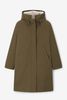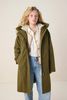 Donkergroene parka van Sissy-Boy. De jas heeft lange mouwen, een ritssluiting, een capuchon, drukknoopsluiting, steekzakken en een binnenzak. Daarnaast heeft het een groene kleur, een faux fur voering en een uitneembare binnenjas. Het model heeft een lengte van 1,71 m en draagt maat S. Materiaal: 100% nylon.