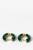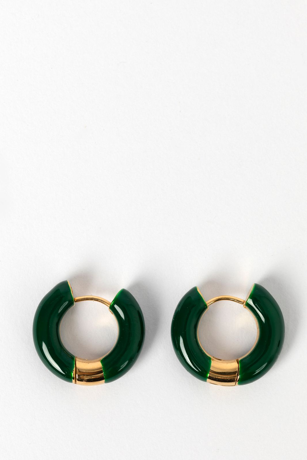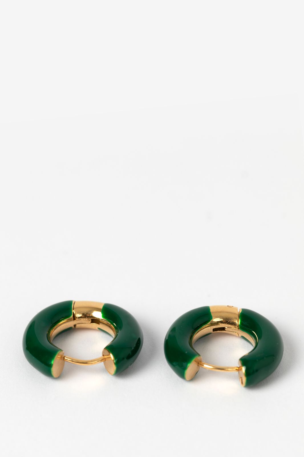 Donkergroene resin oorringen van Sissy-Boy. Het goudkleurige detail aan de onderkant zorgt voor een leuk verschil in textuur en een extra rijke uitstraling. De perfecte ringen voor een subtiel kleuraccent in je outfit. Materiaal: 100% staal. Afmeting: 2x2 cm. Dikte: 0,5 cm.