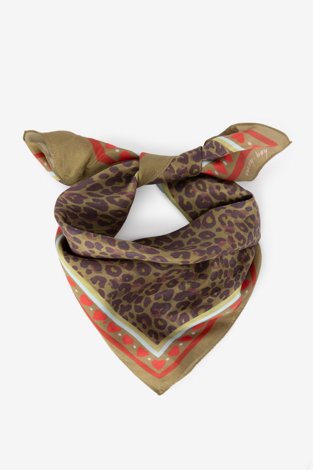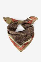 Donkergroene sjaal met leopard print van Sissy-Boy Deze sjaal heeft een glanzende look en is bedrukt met een all-over leopard print. Afmeting: 50 x 50 cm. Materiaal: 100% zijde.