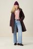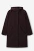Donkerpaarse parka van Sissy-Boy. De jas heeft lange mouwen, een ritssluiting, een capuchon, een drukknoopsluiting, steekzakken en een binnenzak. Daarnaast heeft het nog een binnenzak en een donkerpaarse kleur. Het model heeft een lengte van 1,71 m en draagt maat S. Materiaal: 100% polyester.