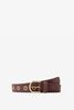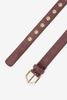 Donkerrode opengewerkte riem van Sissy-Boy. De riem heeft een opengewerkte studs en een gouden gesp. Materiaal: 100% suède.