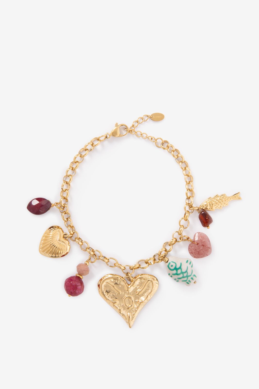 Gold plated armband met bedels van Sissy-Boy. De armband heeft een gouden kleur en is behangen met diverse kleurrijke bedels. Vermijd contact met cosmetica (parfum, haarlak, make-up, nagellakremover, lichaamsolie, zonnebrandolie, handgel en deodorant). Draag geen sieraden tijdens het douchen, baden of zwemmen. Met name chloor kan de sieraden permanent beschadigen of verkleuren. Afmeting: 16 cm + 4 cm. Materiaal: 100% staal.