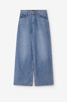Blauwe high waist wide leg jeans van het merk LEE. De jeans heeft een hoge taille, een 5-pocket model, wijd uitlopende broekspijpen en een knoop- en ritssluiting. Materiaal: 69% katoen, 31% lyocell.