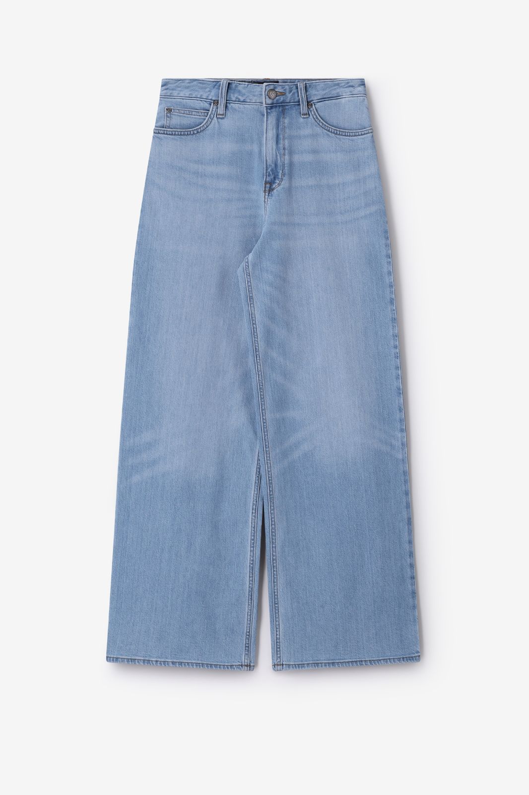Blauwe high waist wide leg jeans van het merk LEE. De jeans heeft hoge taille, een 5-pocket model, wijd uitlopende broekspijpen en een knoop- en ritssluiting. Materiaal: 59% katoen, 39% lyocell, 2% elastaan.
