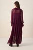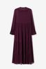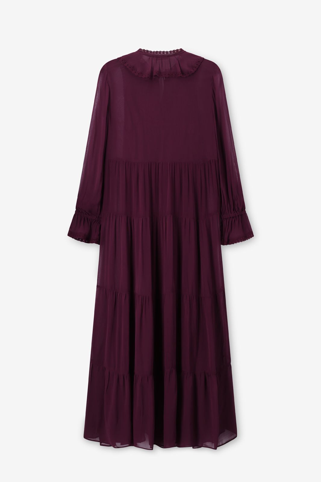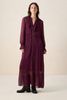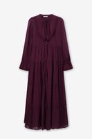Rode maxi jurk met kraag van Sissy-Boy. De jurk heeft lange pofmouwen, een hoge hals, knoopsluiting en een peter pan kraag. Verder heeft de jurk een gehaakt detail rond de hals, kraag en de onderzijde van de mouwen. Het model heeft een lengte van 1,77 en draagt maat S. Materiaal: 100% viscose.