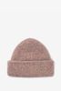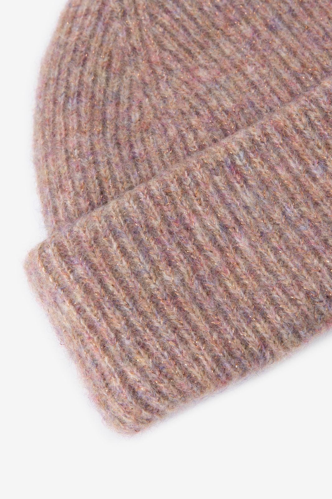 Roze muts met lurex van Sissy-Boy. De muts heeft een omgeslagen rand, roze kleur met glitter lurex details in de stof verwerkt. Materiaal: 47% polyamide, 31% wol, 11% mohair, 7% polyester, 4% elastaan.