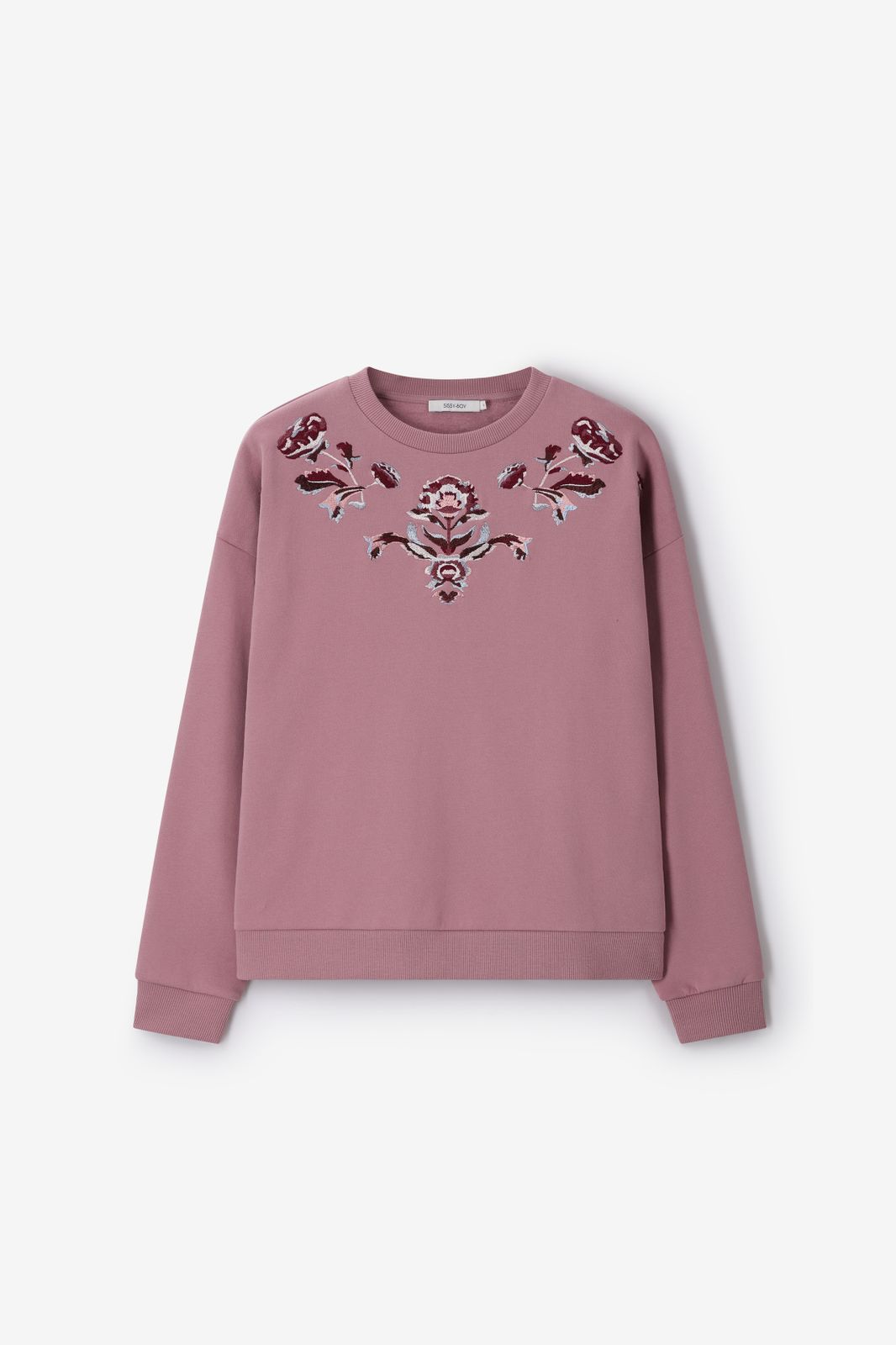 Roze sweater met embroidery van Sissy-Boy. De sweater heeft lange mouwen, een ronde halslijn, ribboorden en een relaxed fit. Verder heeft de sweater een roze kleur met een bloemenborduursel bij de halslijn en schouders. Materiaal: 100% katoen.