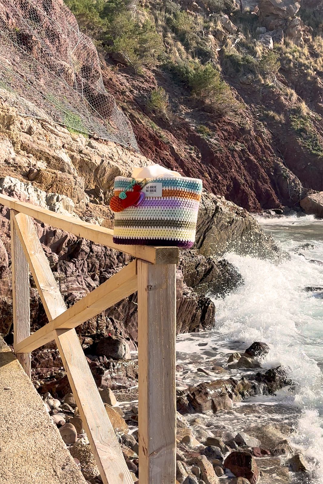 Mini multicolour shopper van Sissy-Boy x Marie Marie. Deze crochet mini shopper is handgemaakt en bestaat uit verschillende gekleurde strepen, waaronder groen, mintgroen, rood, paars, beige en oranje. Verzorgingsadvies: Neem mij niet mee op regenachtige dagen. De shoppers mogen met de hand gewassen worden. Om de levensduur van de tas te verlengen, adviseren we je om de droger niet te gebruiken. Materiaal: 100% katoen. Afmetingen: H19 x B28,5 x D10 cm.