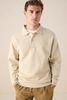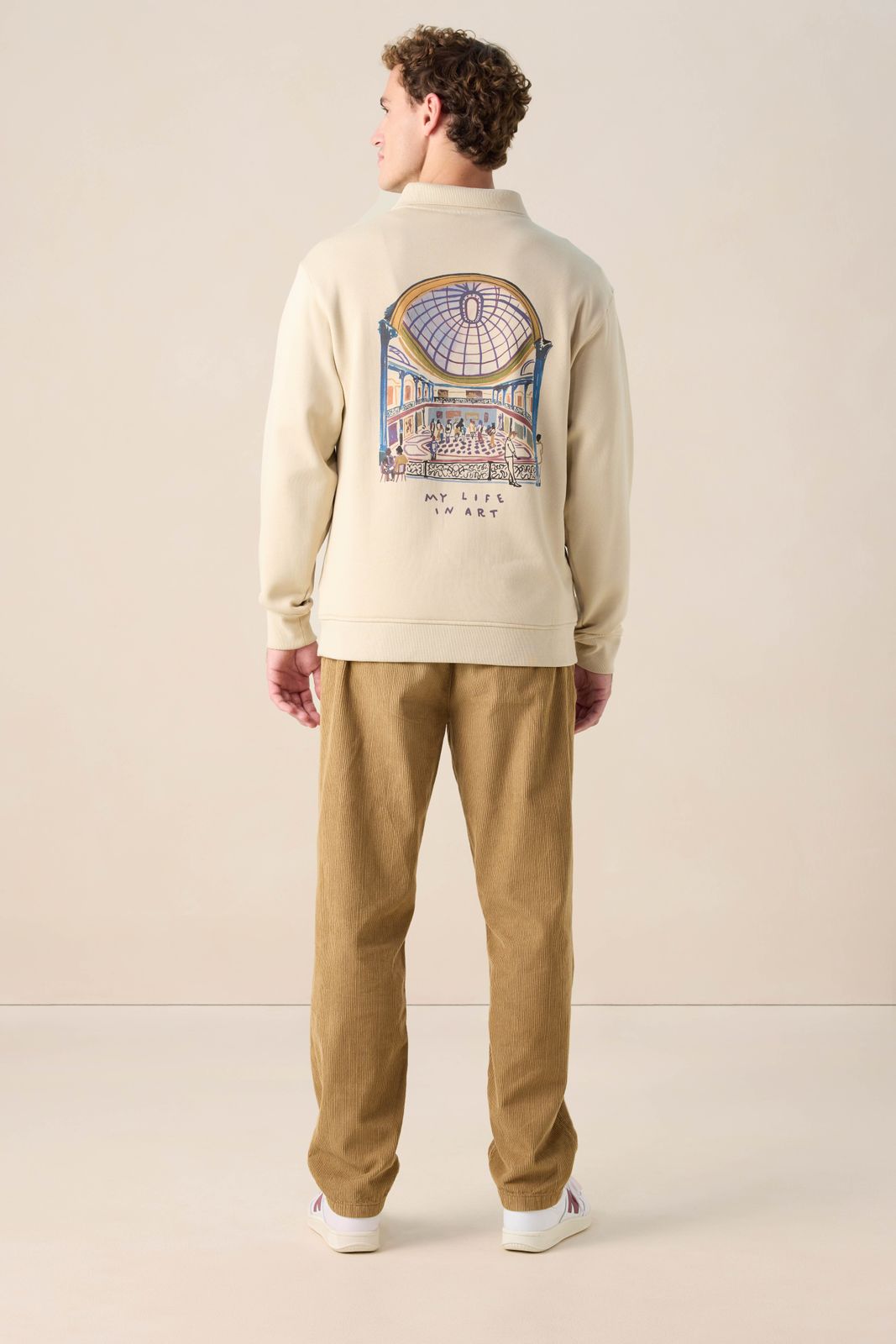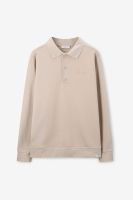 Beige sweater van Sissy-Boy. De sweater heeft lange mouwen, een kraag met knoopsluiting, een rechte fit en artwork aan de achterkant. Materiaal: 100% katoen.