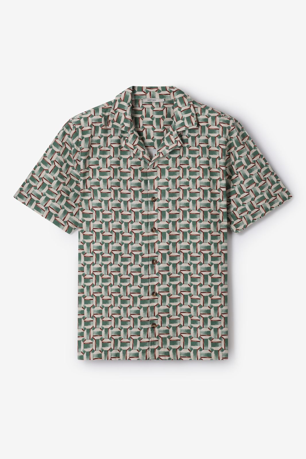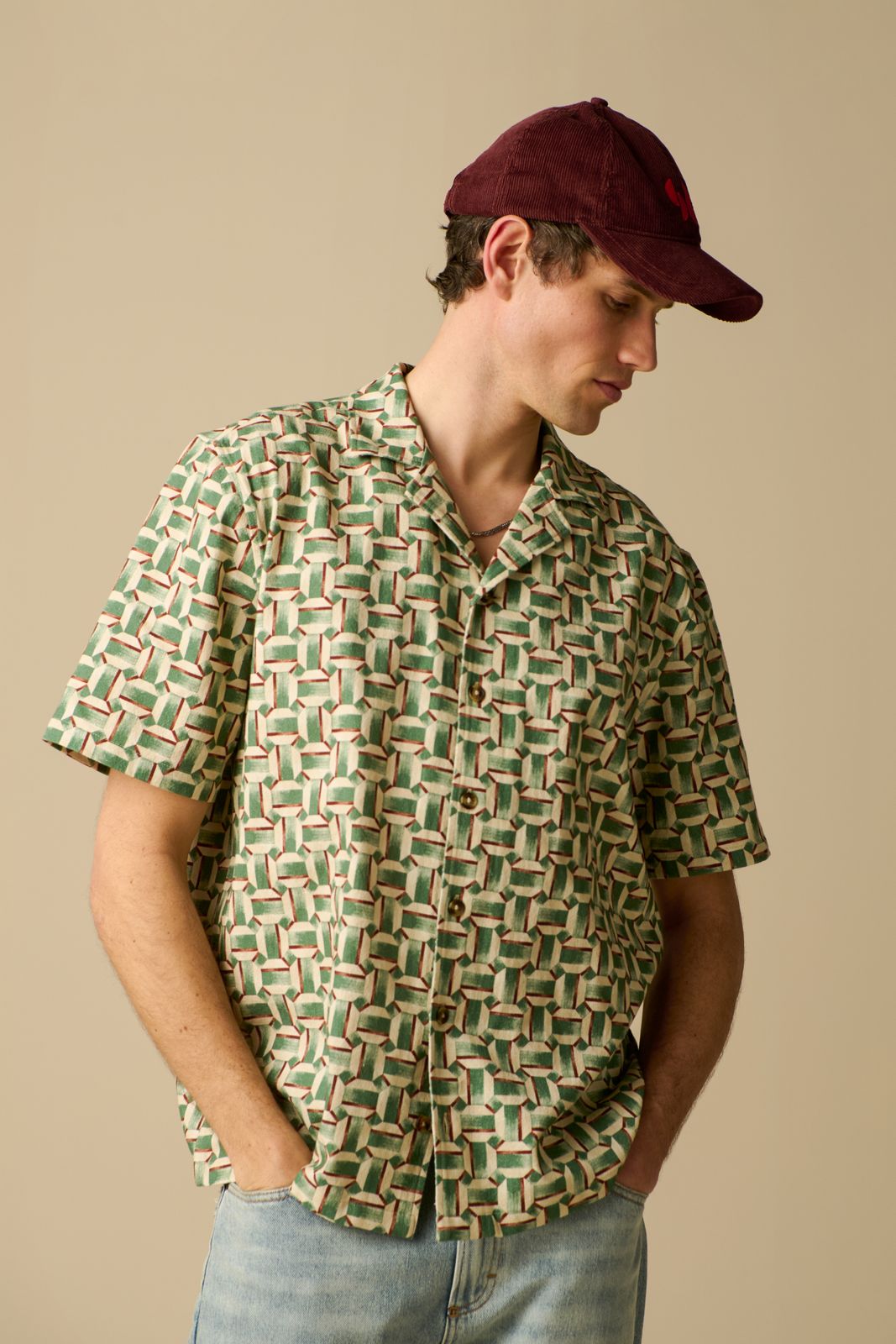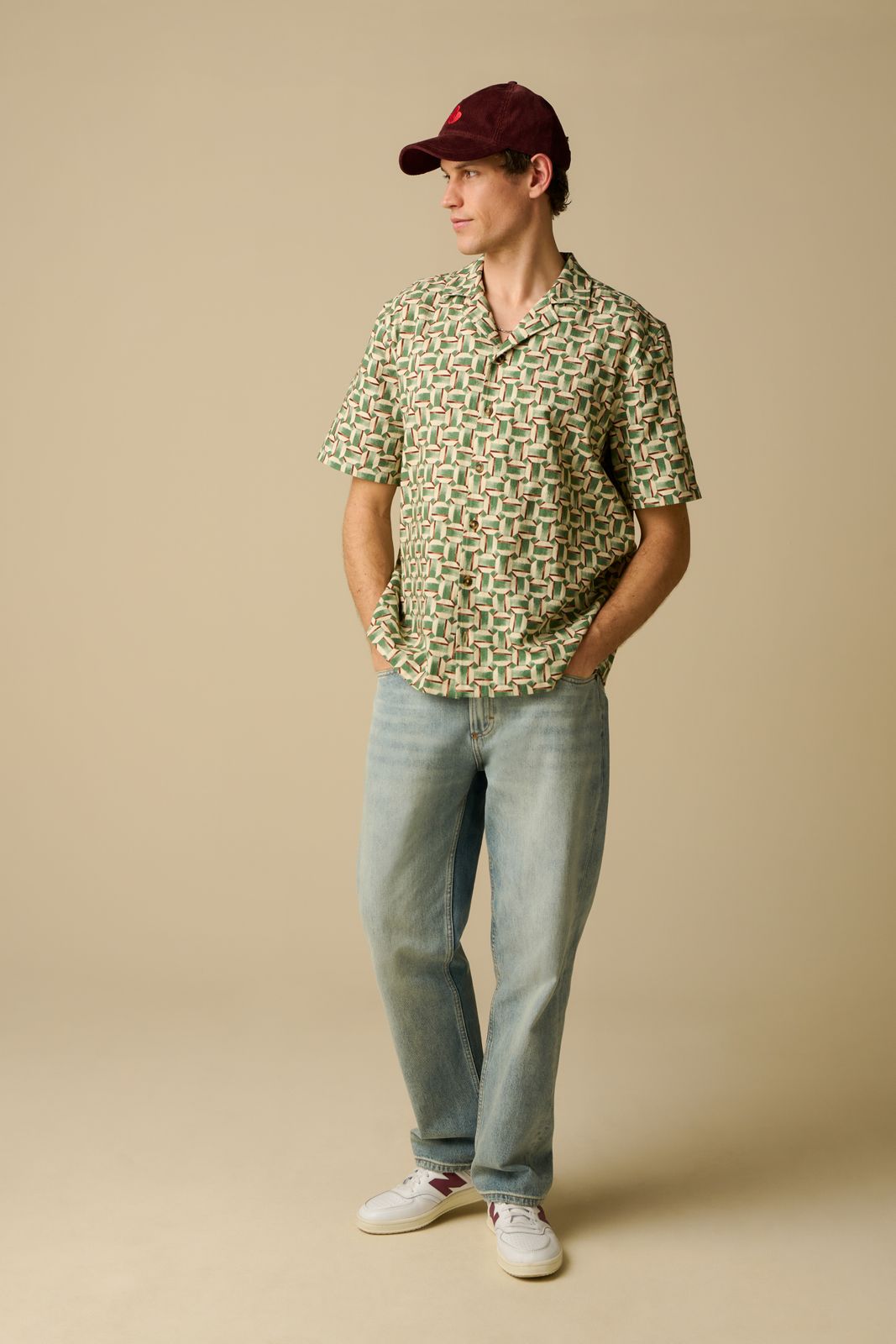 Donkergroen overhemd met print van Sissy-Boy. Het overhemd heeft korte mouwen, een kraag, knoopsluiting en een relaxed fit. Verder heeft het overhemd een donkergroene kleur met een all-over print. Materiaal: 100% katoen.