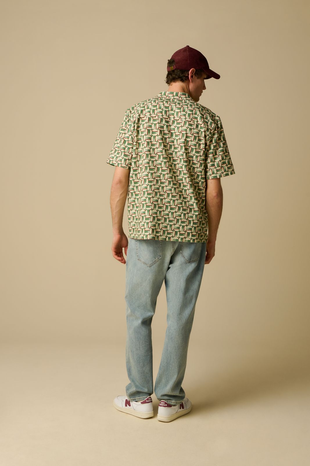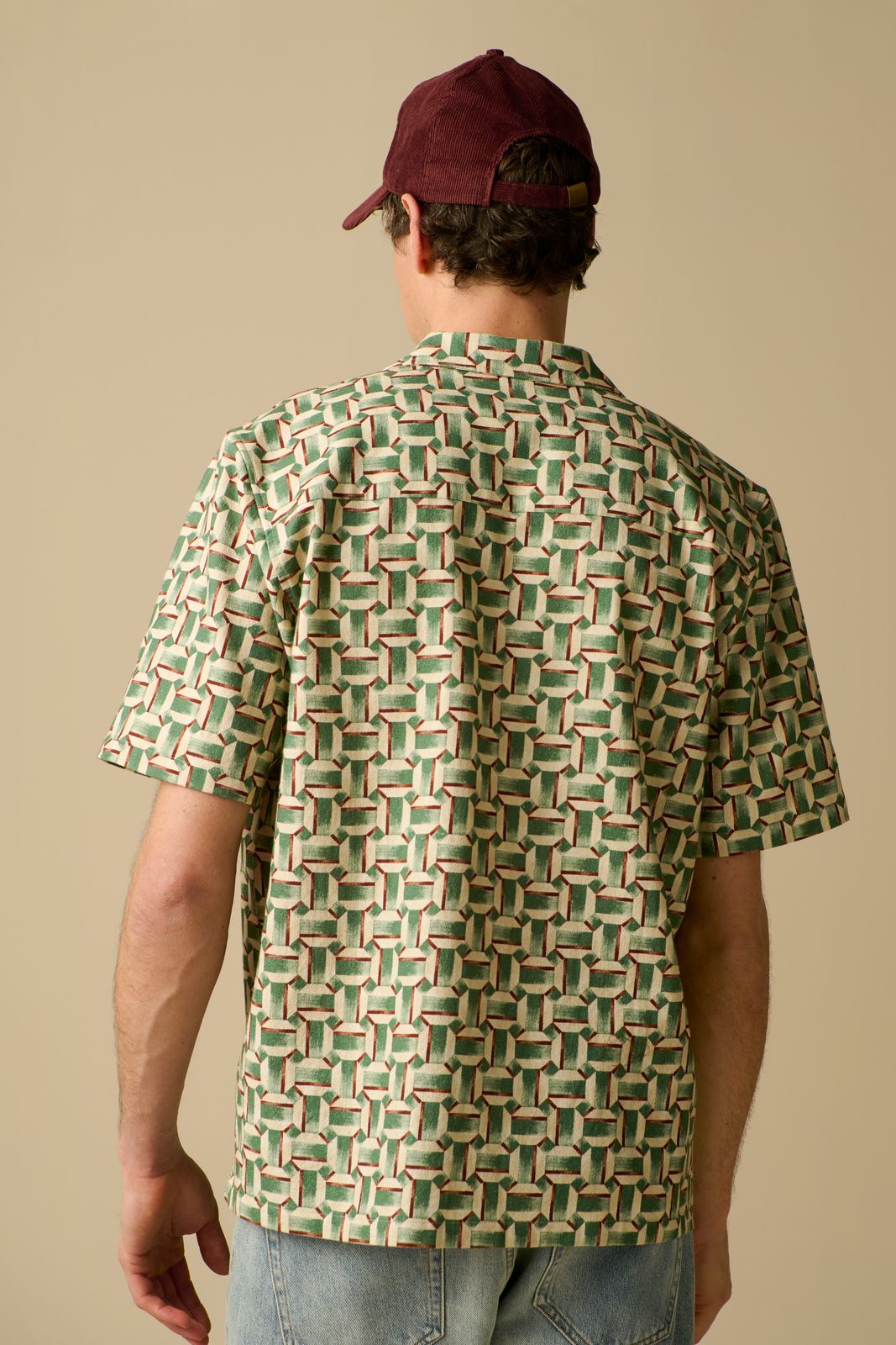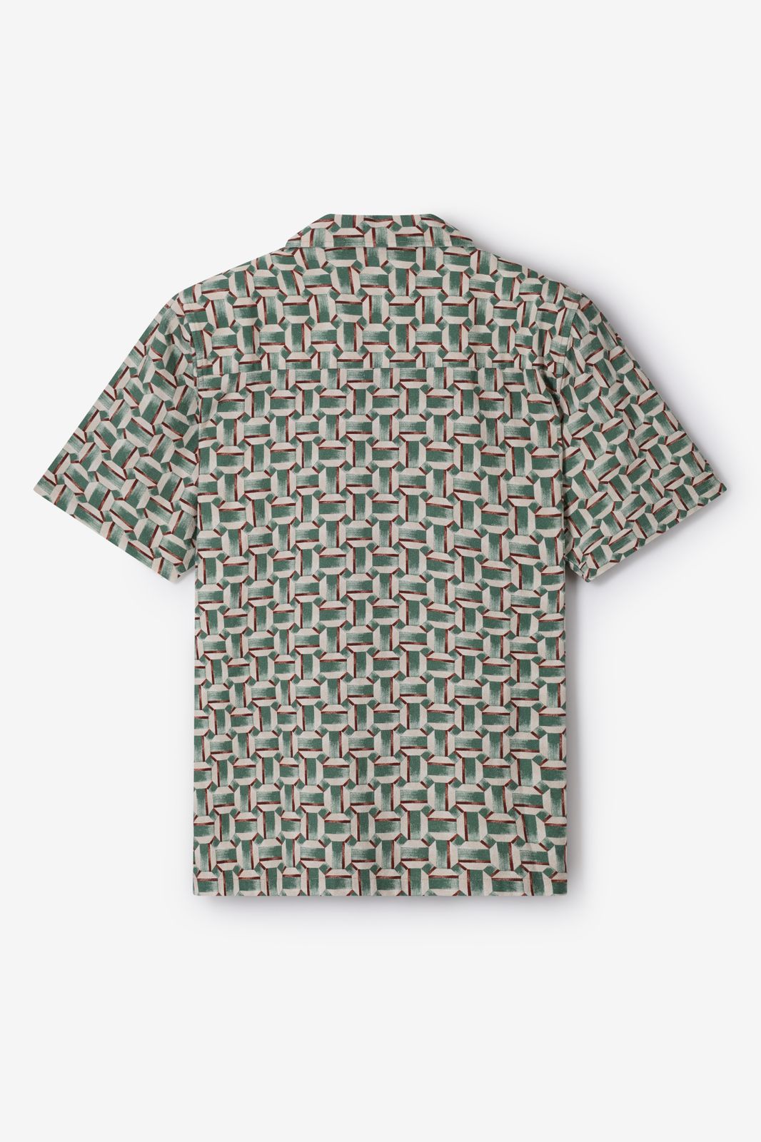 Donkergroen overhemd met print van Sissy-Boy. Het overhemd heeft korte mouwen, een kraag, knoopsluiting en een relaxed fit. Verder heeft het overhemd een donkergroene kleur met een all-over print. Materiaal: 100% katoen.