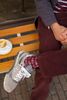 Donkerrode sokken met all-over print van Heroes on Socks. De sokken hebben een donkerrode kleur met een all-over fietsen print in een witte kleur. Materiaal: 100% katoen.
