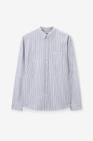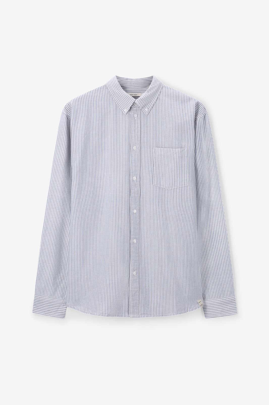 Lichtblauw gestreept overhemd van Sissy-Boy. Het overhemd heeft lange mouwen, één borstzak, een kraag, knoopsluiting en een rechte fit. Daarnaast heeft het een blauwe kleur met een all-over strepen design, Het model heeft een lengte van 1,87 m en draagt maat M. Materiaal: 100% katoen.