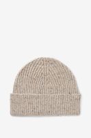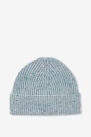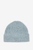 Lichtblauwe wollen muts van Sissy-Boy. De muts heeft een omgeslagen rand, lichtblauwe kleur met gekleurde stipjes in de stof verwerkt. Materiaal: 80% wol, 20% nylon.