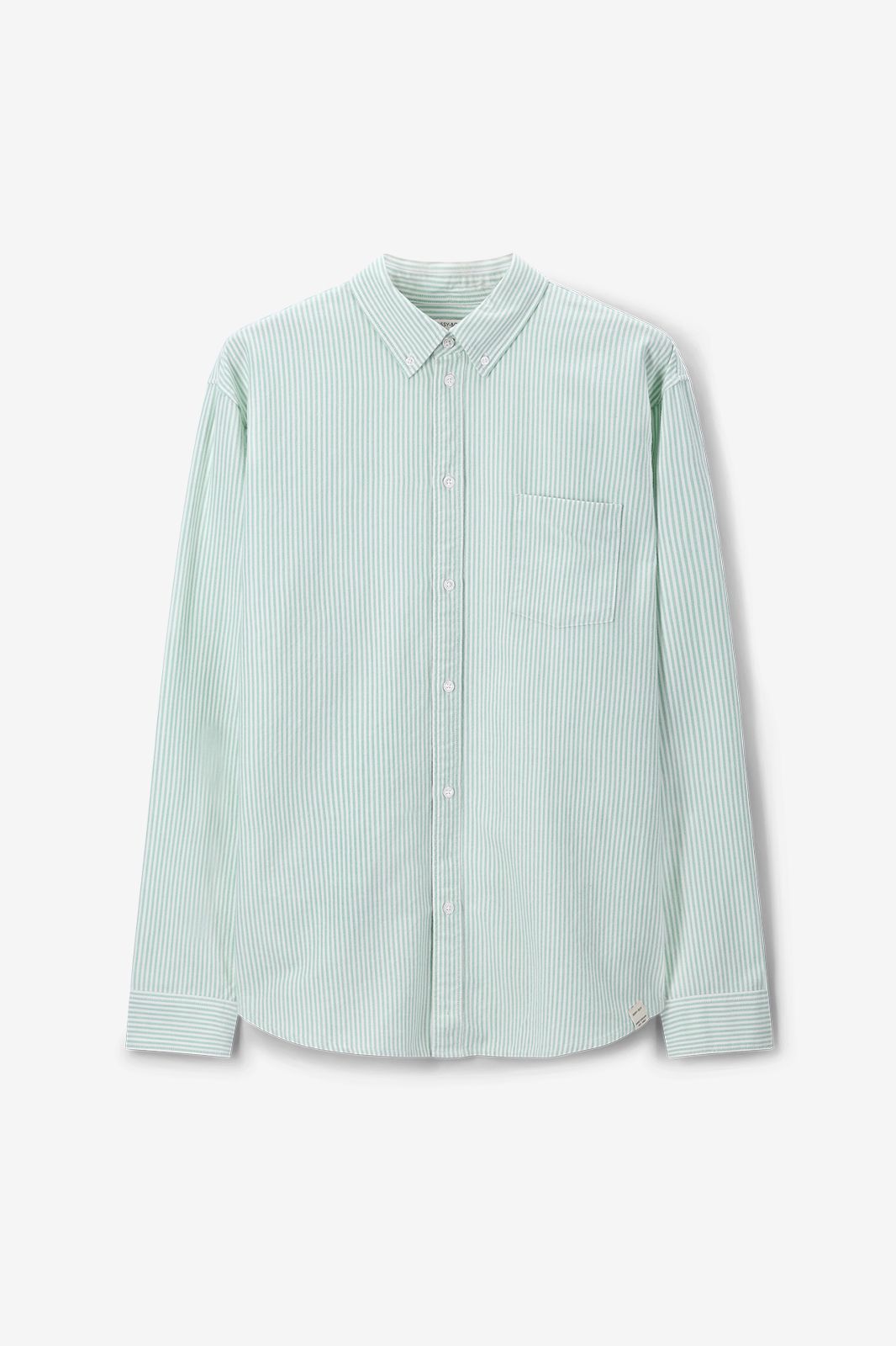 Lichtgroen gestreept overhemd van Sissy-Boy. Het overhemd heeft lange mouwen, één borstzak, een kraag, knoopsluiting en een rechte fit. Daarnaast heeft het een groene kleur met een all-over strepen design. Het model heeft een lengte van 1,87 m en draagt maat M. Materiaal: 100% katoen.