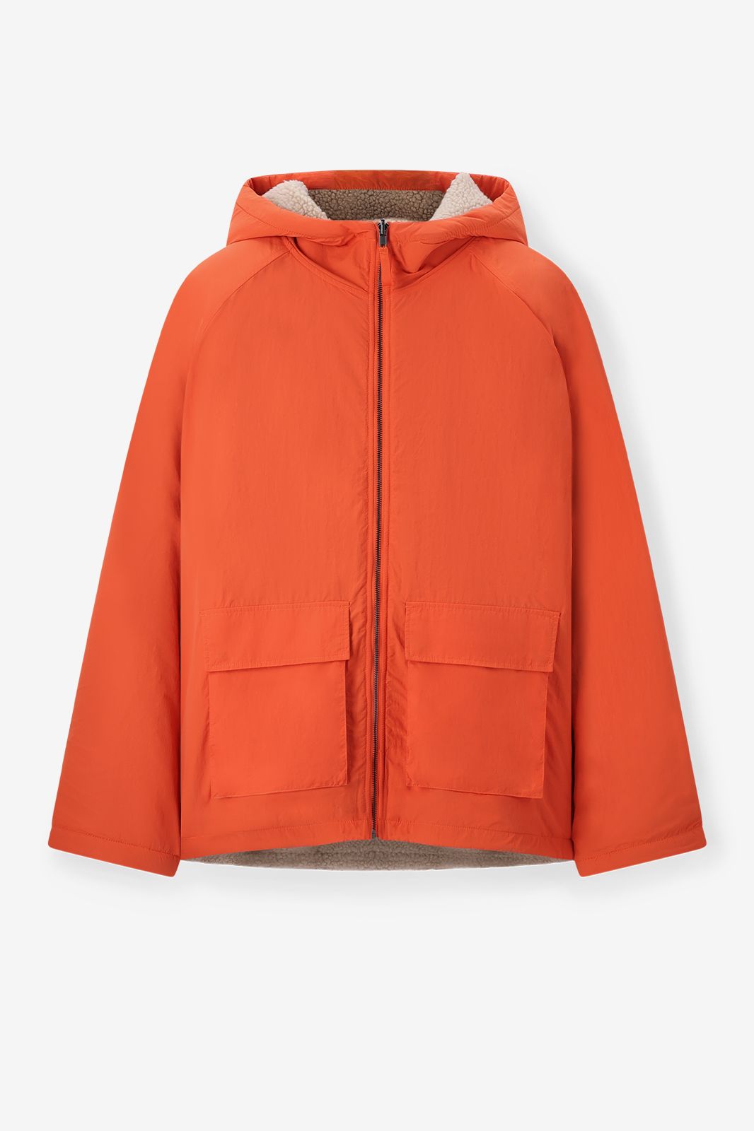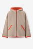 Oranje reversible teddy jas van Sissy-Boy. De jas heeft lange mouwen, een ritssluiting, capuchon en twee opgestikte zakken. Daarnaast is de jas ook omkeerbaar naar een beige teddystof. Materiaal: 100% nylon.