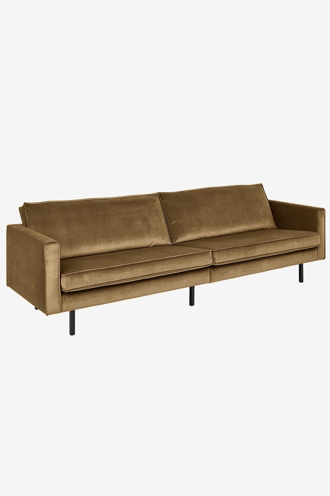 Comfortabele 4-zits velvet bank uit de Amsterdam serie. De bank heeft dankzij het zachte, velvet materiaal een luxe uitstraling en een comfortabele zitervaring. Let op: Bij de levering kan de bank in kleur afwijken van de stofstaal en het online beeldmateriaal door de velvet stofkwaliteit. De bank is 277 cm breed, 85 cm hoog en 86 cm diep. De pootjes zijn circa 20 cm hoog en de zitdiepte is circa 60 cm. De bank heeft een zig zag vering en de poten kunnen gedemonteerd worden. Het onderstel van de bank bestaat uit twee delen. Kleur: Juke Brons 14. Meer weten over deze bank? Lees hier alle informatie over de Amsterdam bank.