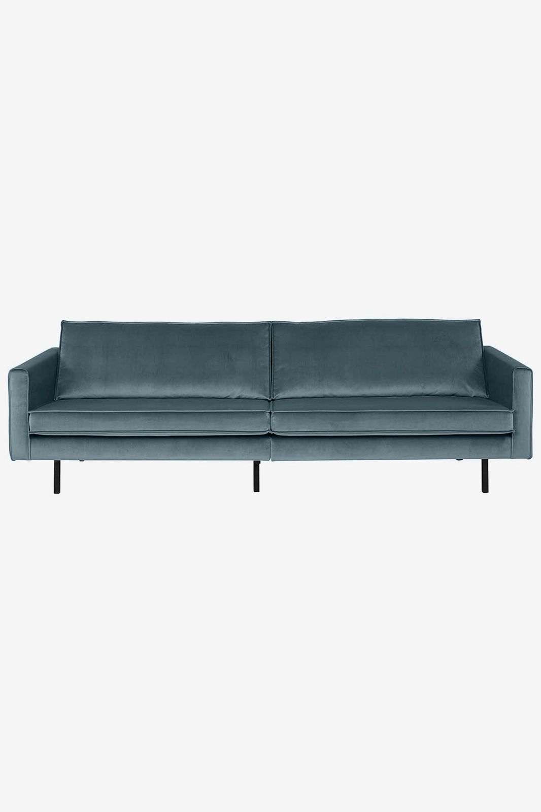 Comfortabele 4-zits velvet bank uit de Amsterdam serie. De bank heeft dankzij het zachte, velvet materiaal een luxe uitstraling en een comfortabele zitervaring. Let op: Bij de levering kan de bank in kleur afwijken van de stofstaal en het online beeldmateriaal door de velvet stofkwaliteit. De bank is 277 cm breed, 85 cm hoog en 86 cm diep. De pootjes zijn circa 20 cm hoog en de zitdiepte is circa 60 cm. De bank heeft een zig zag vering en de poten kunnen gedemonteerd worden. Het onderstel van de bank bestaat uit twee delen. Kleur: Juke Grijsblauw 158. Meer weten over deze bank? Lees hier alle informatie over de Amsterdam bank.