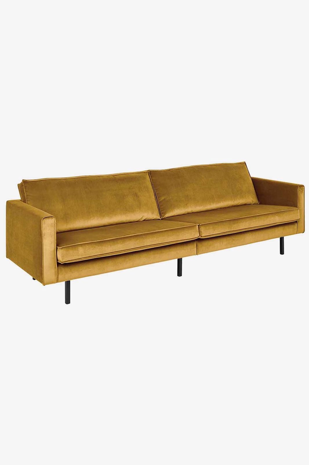 Comfortabele 4-zits velvet bank uit de Amsterdam serie. De bank heeft dankzij het zachte, velvet materiaal een luxe uitstraling en een comfortabele zitervaring. Let op: Bij de levering kan de bank in kleur afwijken van de stofstaal en het online beeldmateriaal door de velvet stofkwaliteit. De bank is 277 cm breed, 85 cm hoog en 86 cm diep. De pootjes zijn circa 20 cm hoog en de zitdiepte is circa 60 cm. De bank heeft een zig zag vering en de poten kunnen gedemonteerd worden. Het onderstel van de bank bestaat uit twee delen. Kleur: Juke Oker 132. Meer weten over deze bank? Lees hier alle informatie over de Amsterdam bank.