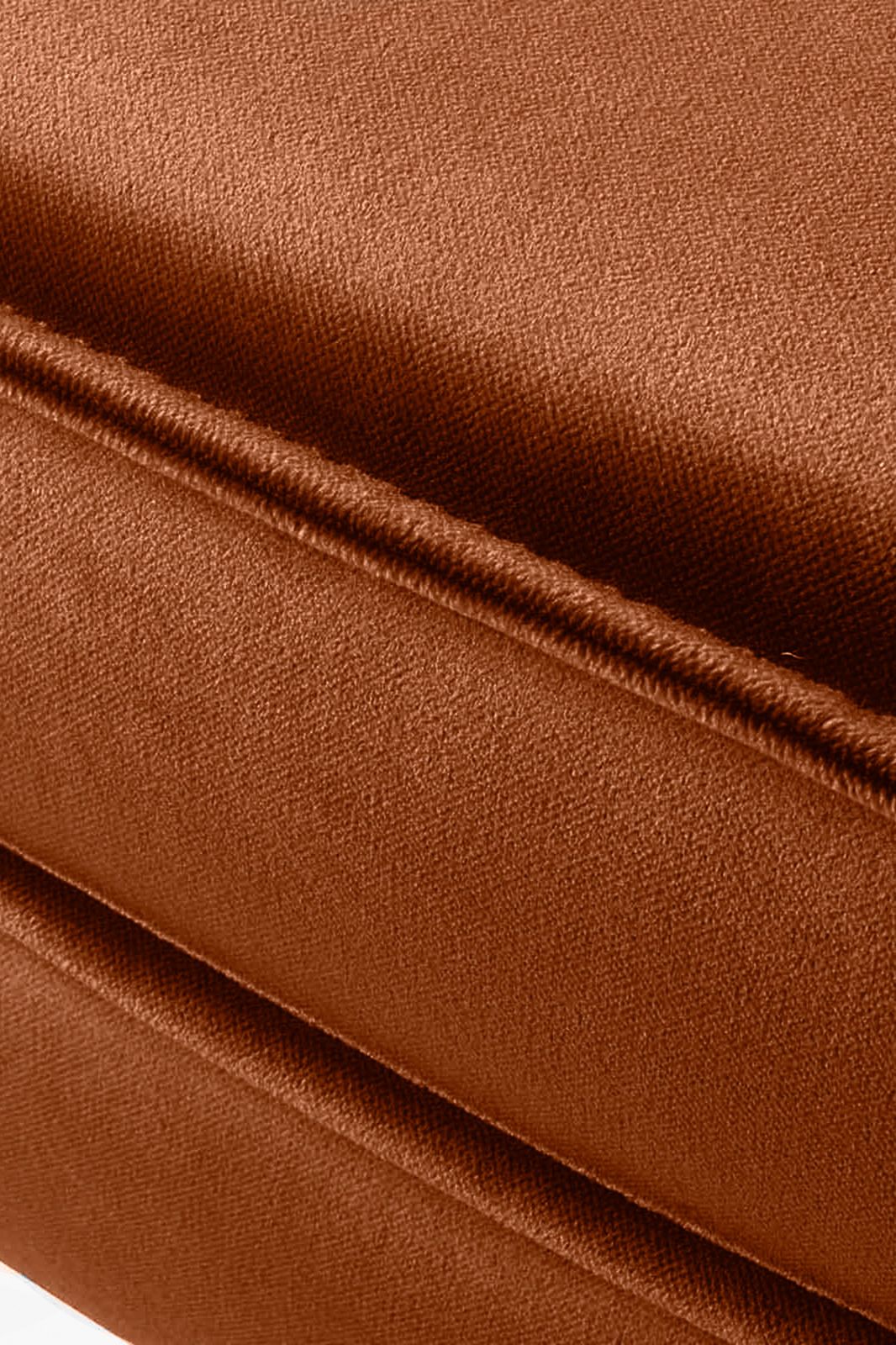 Velvet hocker uit de Amsterdam serie. De hocker voelt dankzij het fluwelen materiaal zacht aan en heeft een luxe uitstraling. Een ideale aanvulling naast je Amsterdam velvet bank of loveseat. Let op: Bij de levering kan de hocker in kleur afwijken van de stofstaal en het online beeldmateriaal door de velvet stofkwaliteit. De afmetingen van de hocker zijn 90(b)x70(d)x45(h) cm. De hocker heeft een zig zag veren en de poten kunnen gedemonteerd worden. Kleur: Roest 126 Meer weten over deze bank? Lees hier alle informatie over de Amsterdam bank.