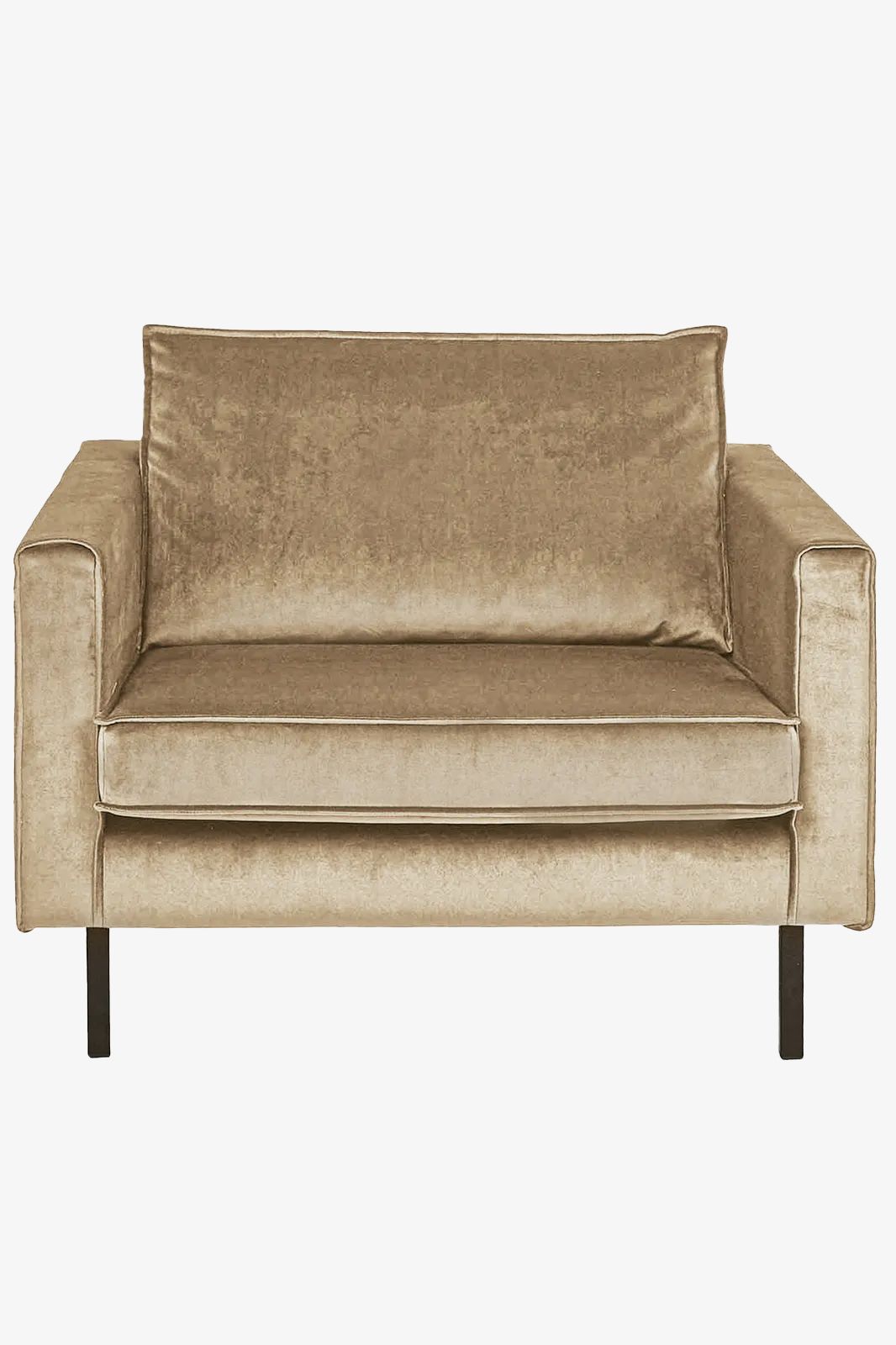 Comfortabele velvet loveseat uit de Amsterdam serie. De fauteuil heeft dankzij het zachte, velvet materiaal een luxe uitstraling en een comfortabele zitervaring. Let op: Bij de levering kan de stoel in kleur afwijken van de stofstaal en het online beeldmateriaal door de velvet stofkwaliteit. De stoel is 105 cm breed, 85 cm hoog en 86 cm diep. De pootjes zijn circa 20 cm hoog en de zitdiepte is circa 60 cm. De loveseat heeft een zig zag voering en de poten kunnen gedemonteerd worden. Kleur: Juke Sand 03. Meer weten over deze bank? Lees hier alle informatie over de Amsterdam bank.