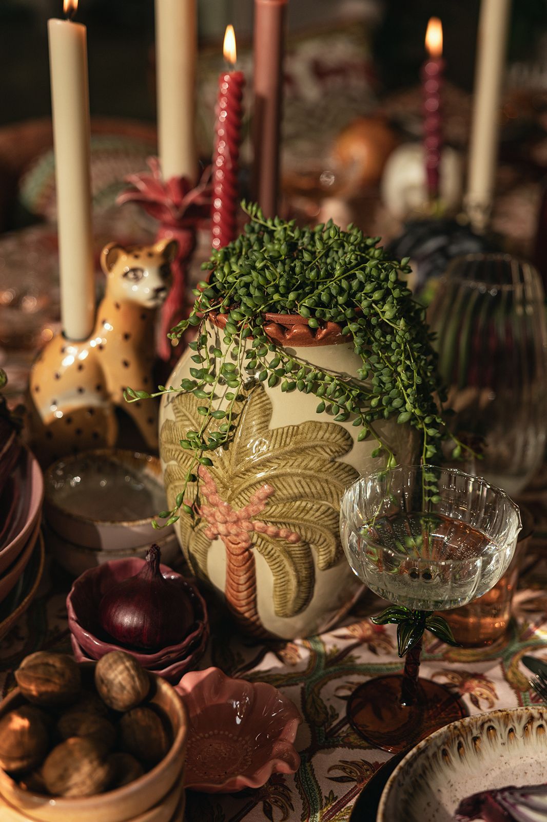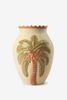 Beige vaas met palmboom van Sissy-Boy. De vaas heeft een beige kleur met een palmboom op de voorzijde en aan de bovenzijde een roze golvende rand. Verder hebben de bladeren aan de palmboom een voelbaar reliëf. Afmetingen: 26 cm x 19 cm. Materiaal: 100% keramiek.