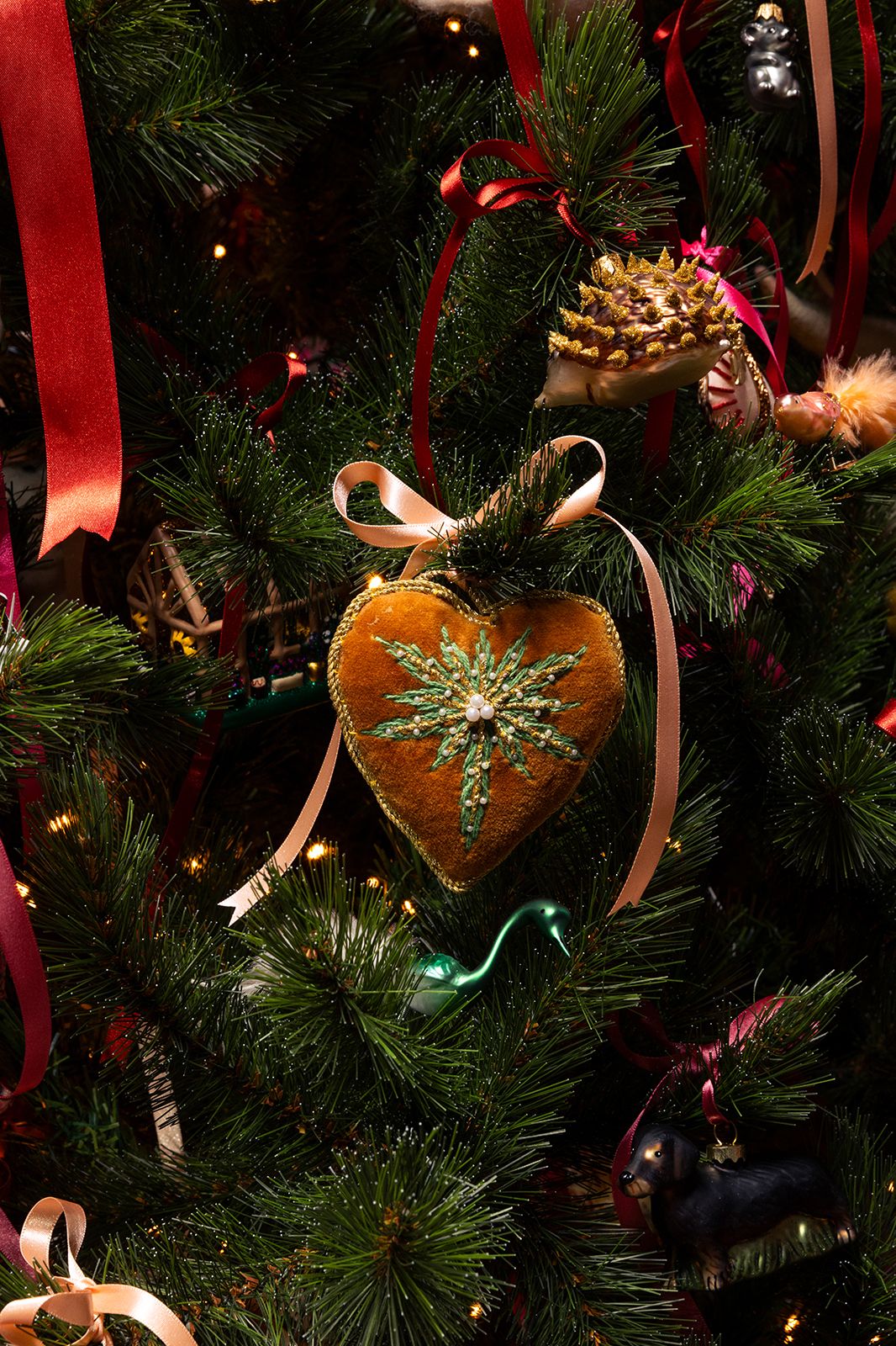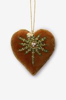 Bruine hart kersthanger met palmboom van Sissy-Boy. De hanger heeft een bruine kleur en is in de vorm van een hart. Verder heeft de hanger in het midden een palmboom detail versierd met parels. Afmeting: 10 cm. Materiaal: 70% glas, 30% polyester.