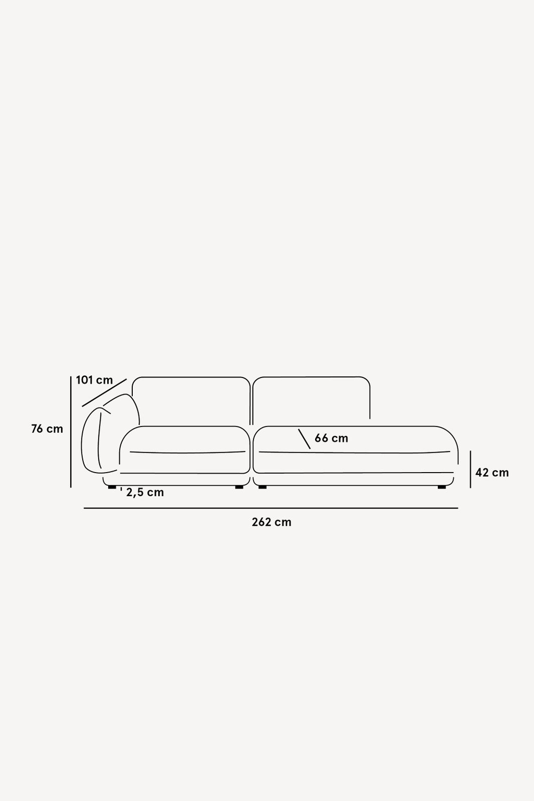 3-zits otto longue rechts uit de Countess serie van Sissy-Boy. De serie bestaat uit zeven modulaire onderdelen, zodat je de bank precies kunt samenstellen naar jouw wensen en de ruimte die je hebt. Door de lage zitting geeft de Countess bank je interieur een moderne loft uitstraling. De stof is gemaakt van 100% polyester en de kleur is Artic Clementine. Het meubel heeft een totale afmeting van 262x98x76cm (lxbxh). De zitdiepte is 66 cm en de zithoogte is 42 cm. Meer weten over deze bank? Lees hier alle informatie over de Countess bank.