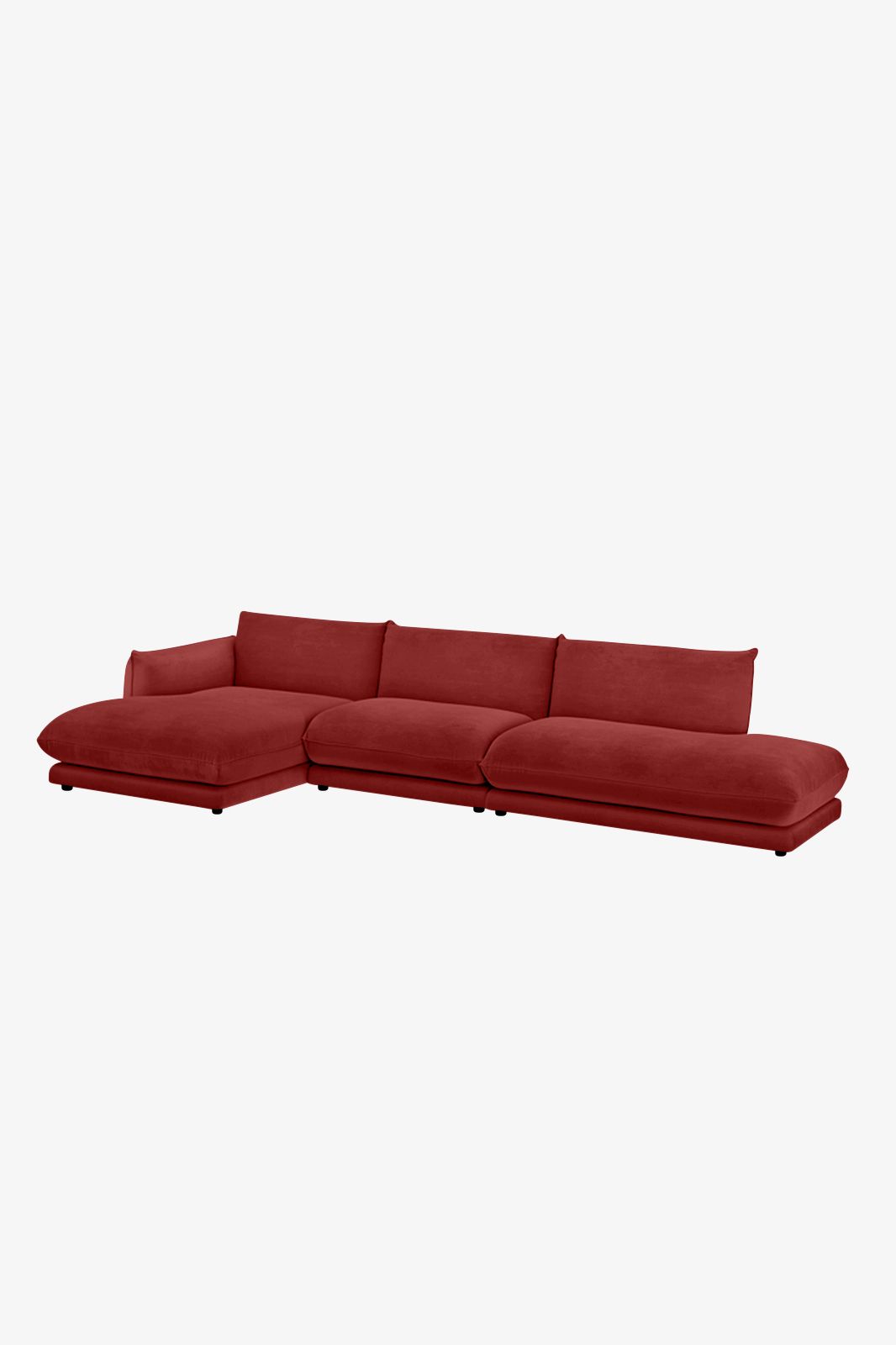4-zits bank chaise longue links otto longue rechts uit de Countess serie van Sissy-Boy. De serie bestaat uit zeven modulaire onderdelen, zodat je de bank precies kunt samenstellen naar jouw wensen en de ruimte die je hebt. Door de lage zitting geeft de Countess bank je interieur een moderne loft uitstraling. De stof is gemaakt van 100% polyester en de kleur is Royal Bordeaux 37. De 4-zits bank heeft een totale afmeting van 356x164x76 cm (lxbxh). De bank heeft een zitdiepte van 66 cm en 129 cm en een zithoogte van 42 cm. Meer weten over deze bank? Lees hier alle informatie over de Countess bank.