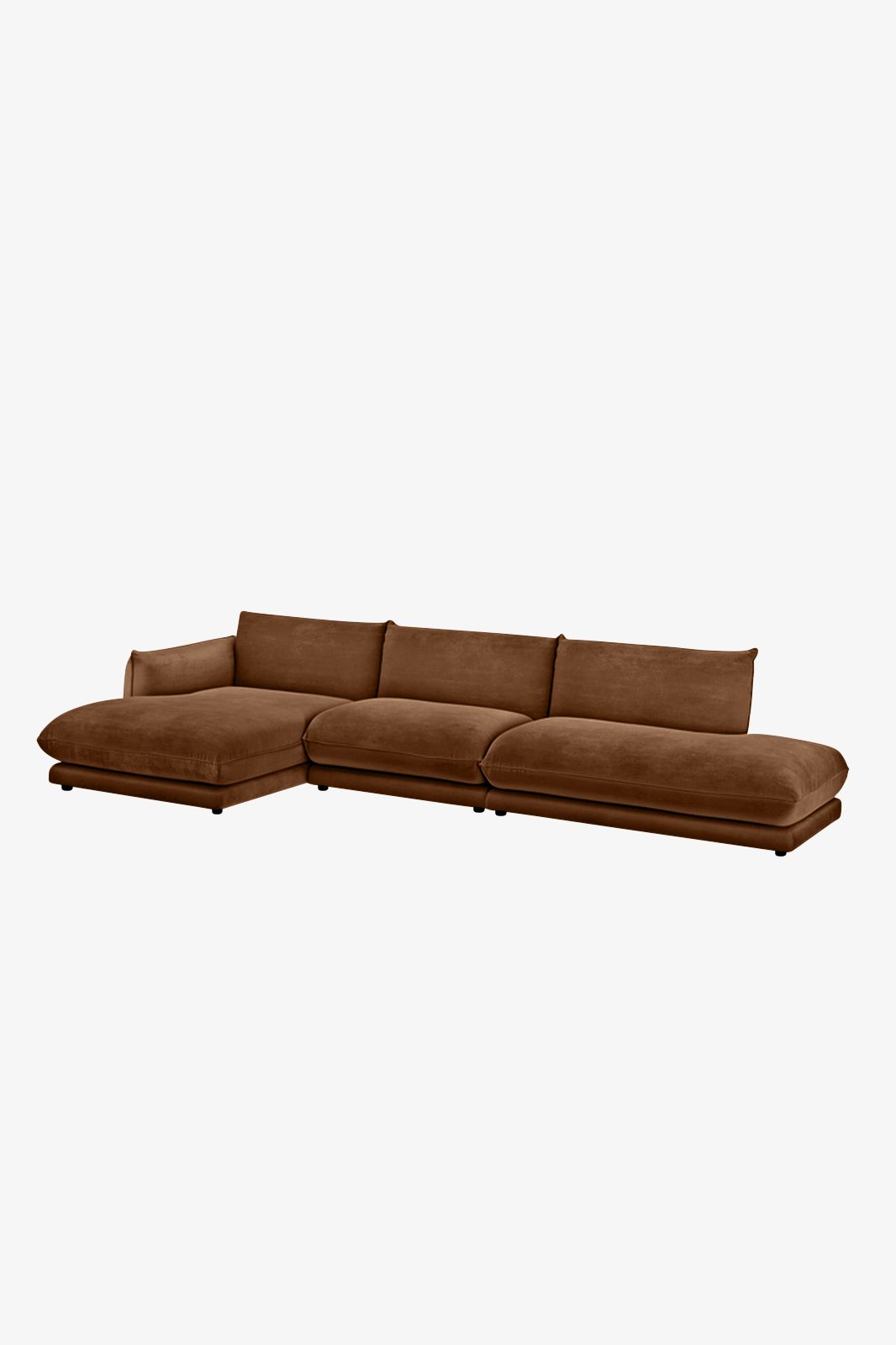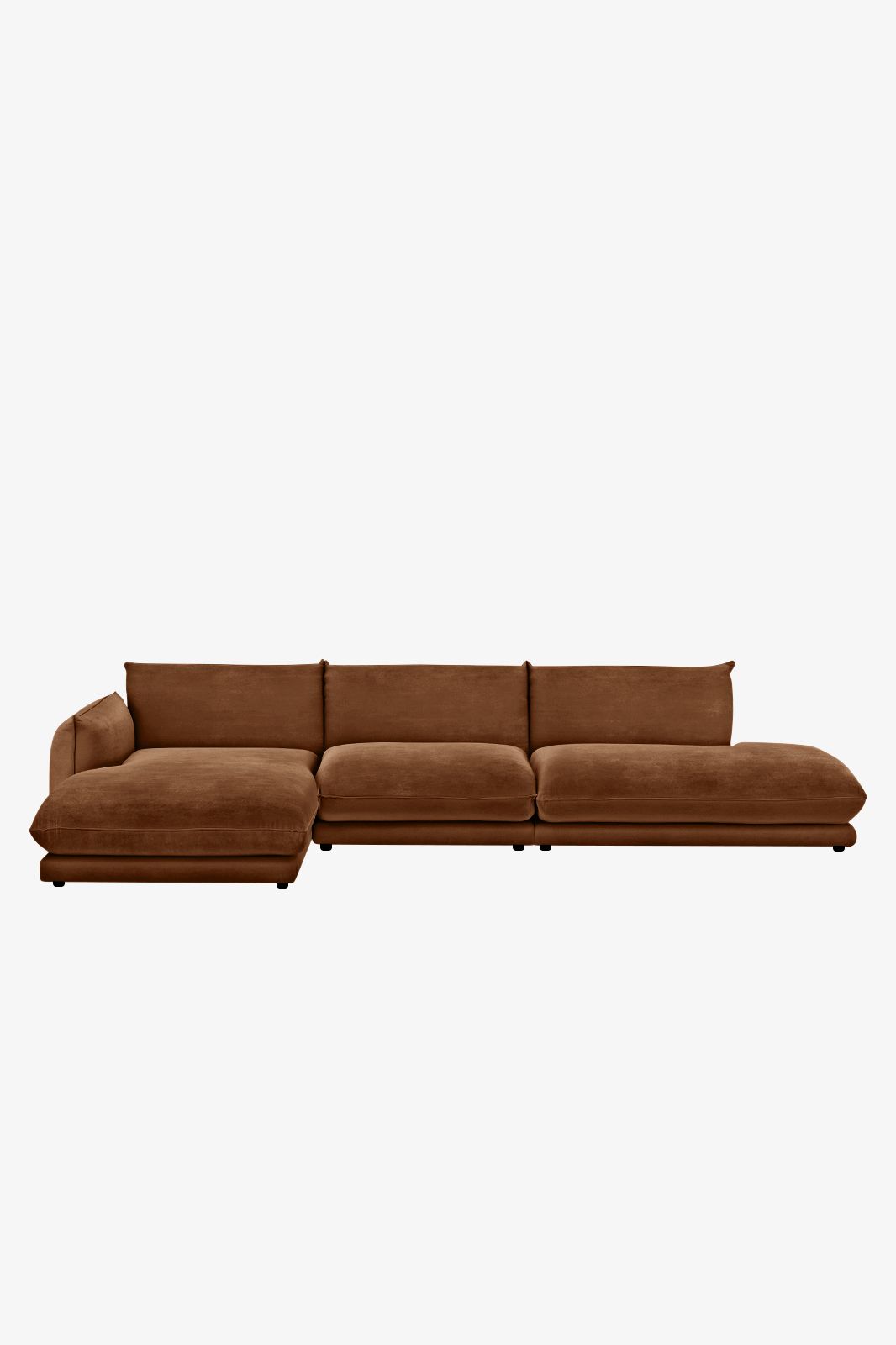 4-zits bank chaise longue links otto longue rechts uit de Countess serie van Sissy-Boy. De serie bestaat uit zeven modulaire onderdelen, zodat je de bank precies kunt samenstellen naar jouw wensen en de ruimte die je hebt. Door de lage zitting geeft de Countess bank je interieur een moderne loft uitstraling. De stof is gemaakt van 100% polyester en de kleur is Royal Wood 108. De 4-zits bank heeft een totale afmeting van 356x164x76 cm (lxbxh). De bank heeft een zitdiepte van 66 cm en 129 cm en een zithoogte van 42 cm. Meer weten over deze bank? Lees hier alle informatie over de Countess bank.