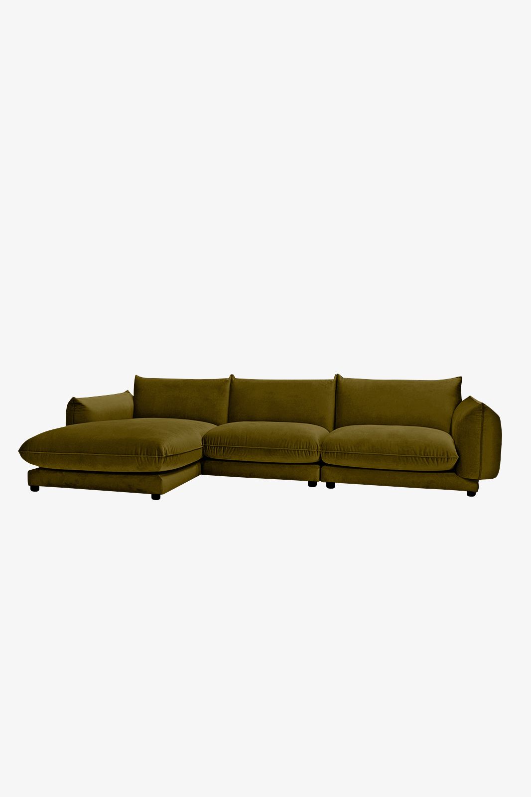 4-zits chaise longue links uit de Countess serie van Sissy-Boy. De serie bestaat uit zeven modulaire onderdelen, zodat je de bank precies kunt samenstellen naar jouw wensen en de ruimte die je hebt. Door de lage zitting geeft de Countess bank je interieur een moderne loft uitstraling. De stof is gemaakt van 100% polyester en de kleur is Royal Forest 162. De 4-zits bank heeft een totale afmeting van 334x164x76 cm (lxbxh). De bank heeft een zitdiepte van 66 cm en 129 cm. De zithoogte is 42 cm. De armleuning van de chaise longue zit links. Meer weten over deze bank? Lees hier alle informatie over de Countess bank.