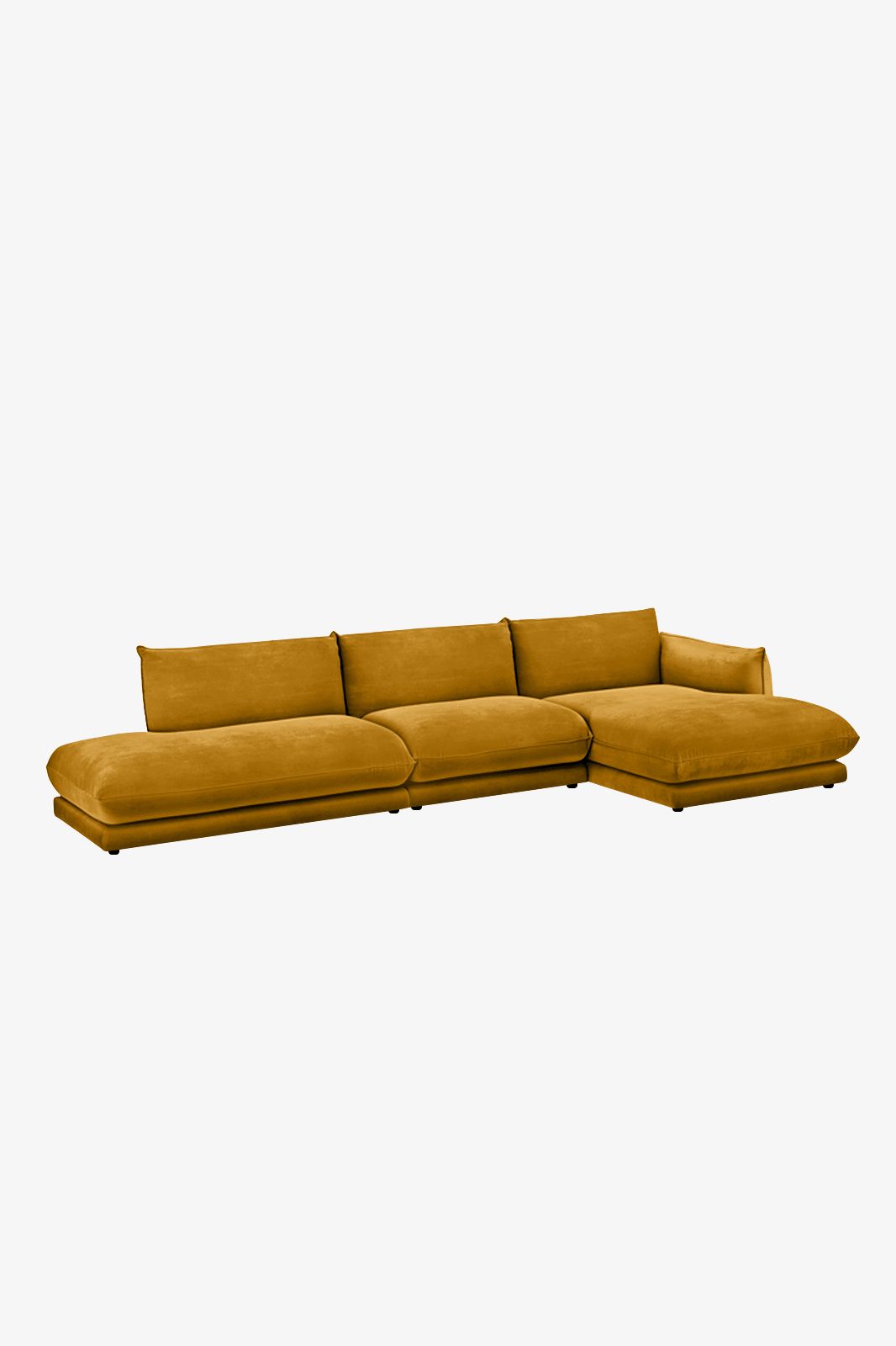 4-zits bank chaise longue rechts otto longue links uit de Countess serie van Sissy-Boy. De serie bestaat uit zeven modulaire onderdelen, zodat je de bank precies kunt samenstellen naar jouw wensen en de ruimte die je hebt. Door de lage zitting geeft de Countess bank je interieur een moderne loft uitstraling. De stof is gemaakt van 100% polyester en de kleur is Royal Gold 132. De 4-zits bank heeft een totale afmeting van 356x164x76 cm (lxbxh). De bank heeft een zitdiepte van 69 cm en 129 cm en een zithoogte van 42 cm. Meer weten over deze bank? Lees hier alle informatie over de Countess bank.