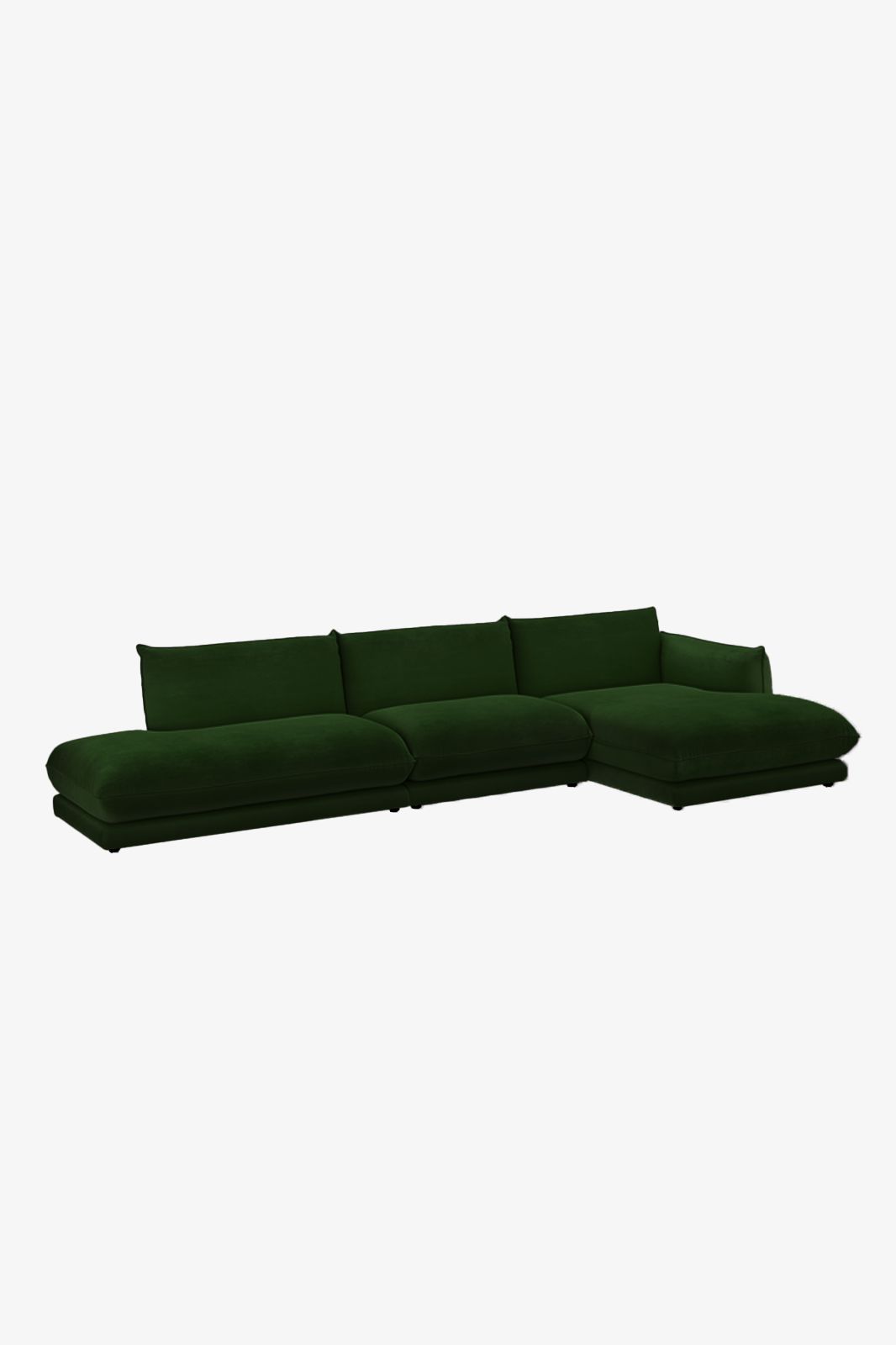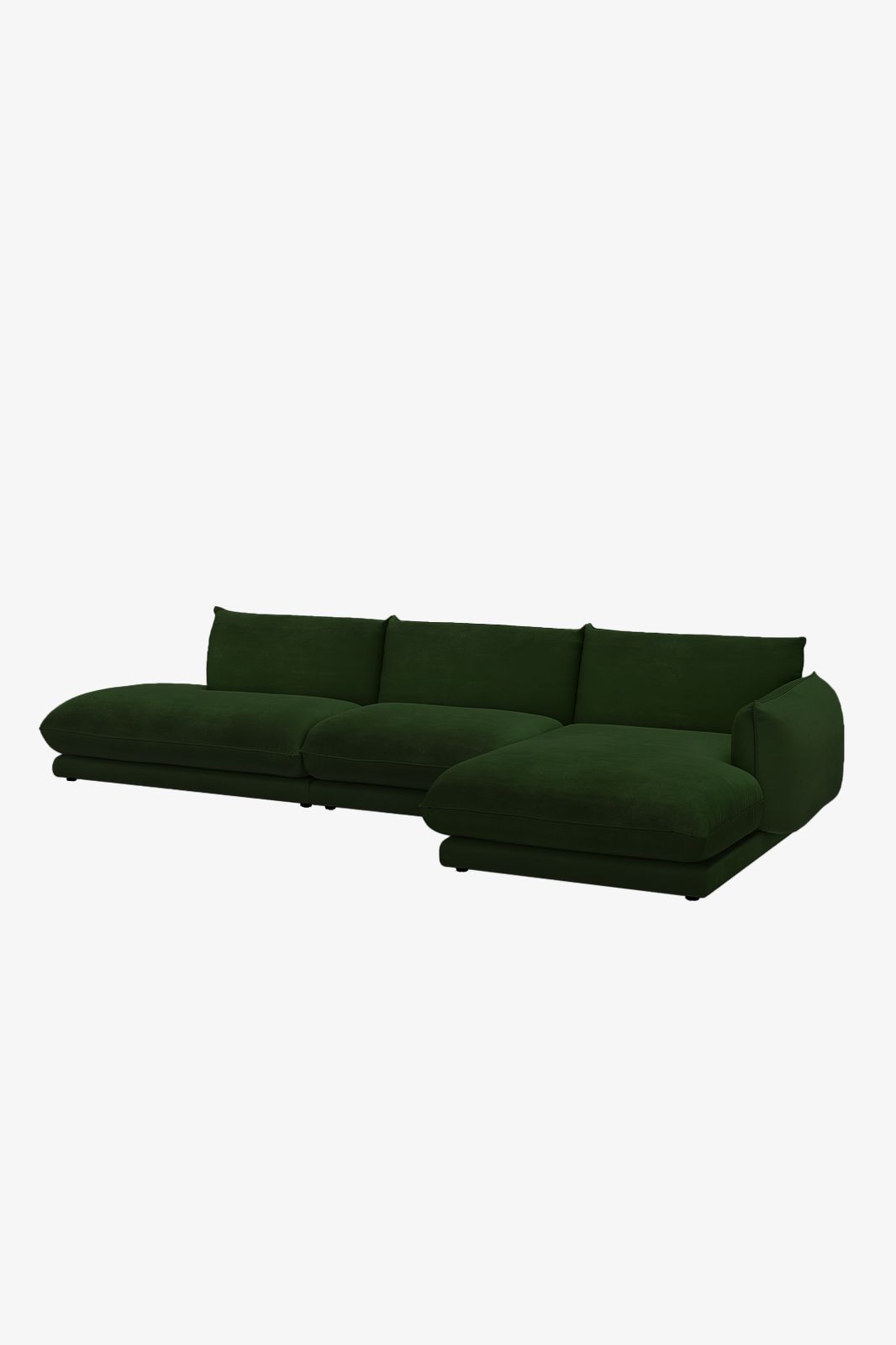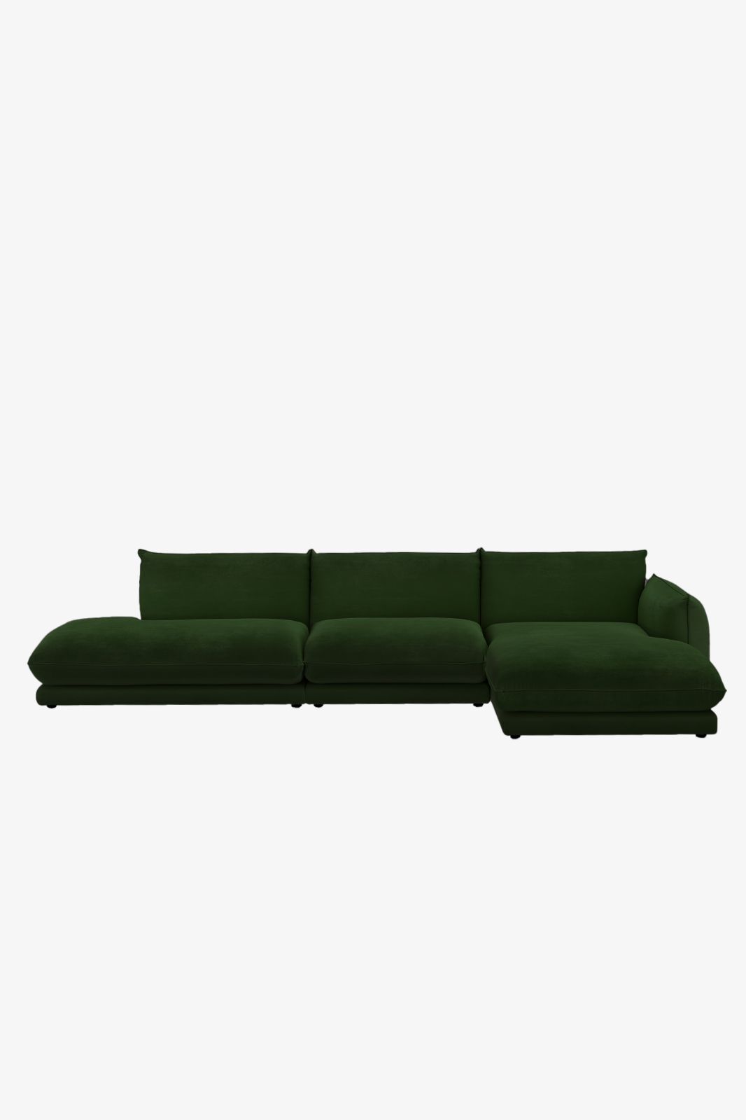 4-zits bank chaise longue rechts otto longue links uit de Countess serie van Sissy-Boy. De serie bestaat uit zeven modulaire onderdelen, zodat je de bank precies kunt samenstellen naar jouw wensen en de ruimte die je hebt. Door de lage zitting geeft de Countess bank je interieur een moderne loft uitstraling. De stof is gemaakt van 100% polyester en de kleur is Salvador Dark green 7. De 4-zits bank heeft een totale afmeting van 356x164x76 cm (lxbxh). De bank heeft een zitdiepte van 66 cm en 129 cm en een zithoogte van 42 cm. Meer weten over deze bank? Lees hier alle informatie over de Countess bank.