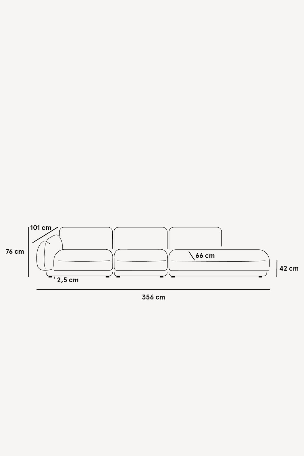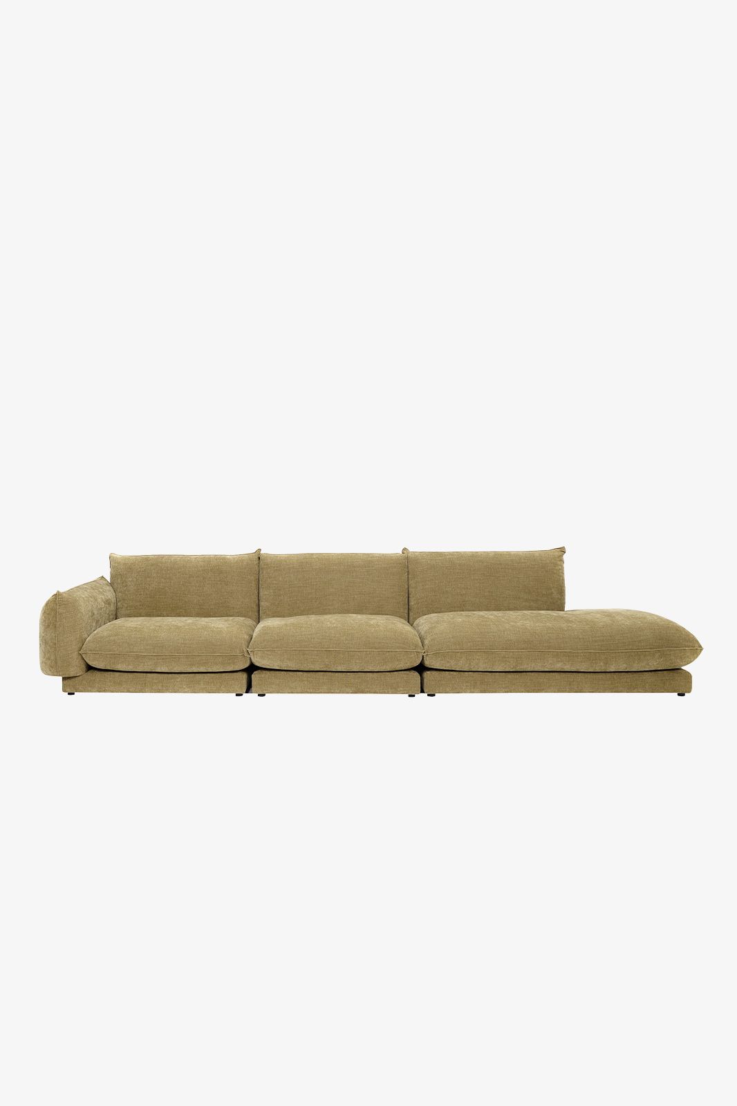 4-zits otto longue rechts uit de Countess serie van Sissy-Boy. De serie bestaat uit zeven modulaire onderdelen, zodat je de bank precies kunt samenstellen naar jouw wensen en de ruimte die je hebt. Door de lage zitting geeft de Countess bank je interieur een moderne loft uitstraling. De stof is gemaakt van 100% polyester en de kleur is Artic Lichen. Het meubel heeft een totale afmeting van 356x101x76 cm (lxbxh). De zitdiepte is 66 cm en de zithoogte is 42 cm. Meer weten over deze bank? Lees hier alle informatie over de Countess bank.