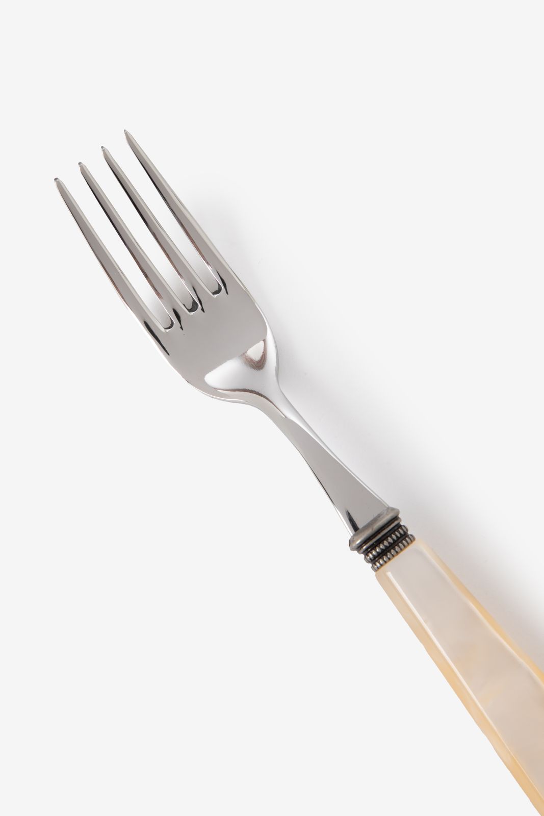 Witte resin vork van het merk Domus & Design. De vork heeft een zilveren kleur met een wit glanzend resin handvat. Verder is de vork gemaakt van staal en resin. Wasadvies: Handwas in aanbevolen, verder is het bestek vaatwasser bestendig tot 50-55 °C. Afmeting: 22 cm.