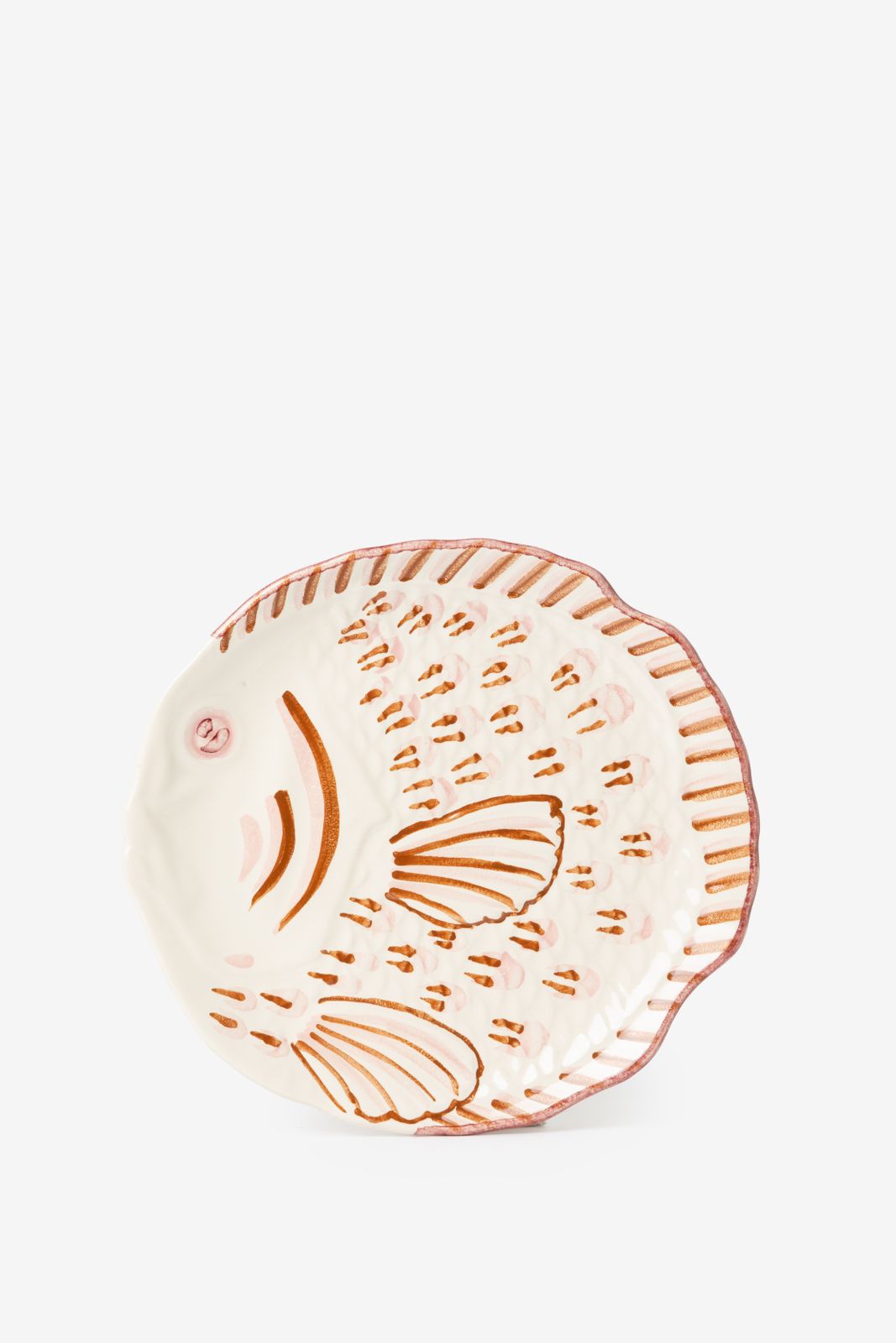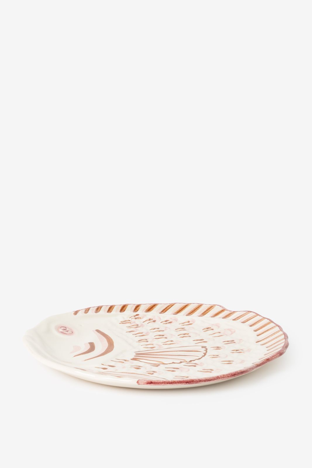 Donkerroze vis dinerbord van Sissy-Boy. Dit handgeschilderde dinerbord heeft een witte basiskleur met donkerroze accenten en is vormgegeven in de vorm van een vis. Afmetingen: 25,5 cm x 24 cm x 2 cm. Materiaal: 100% keramiek.