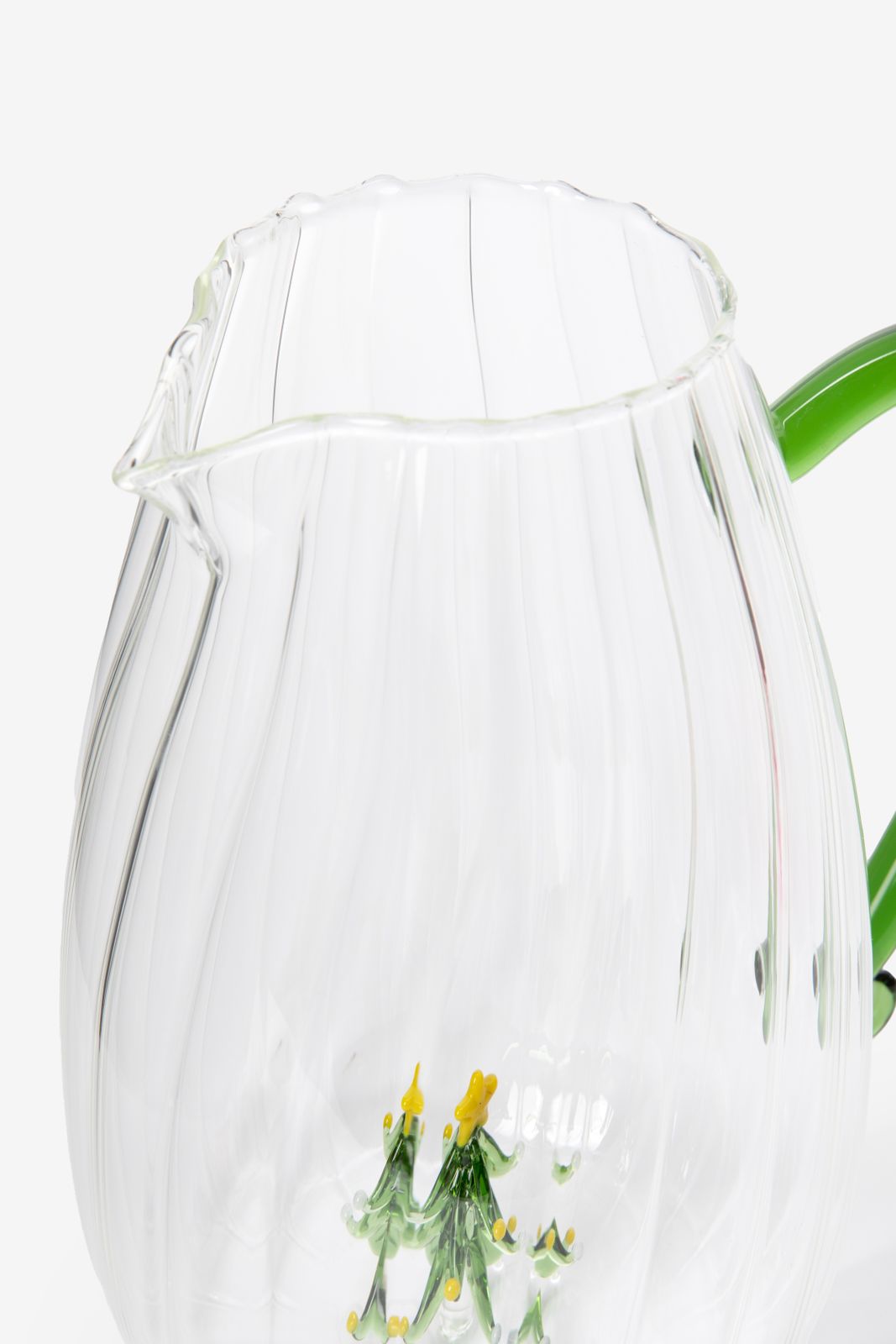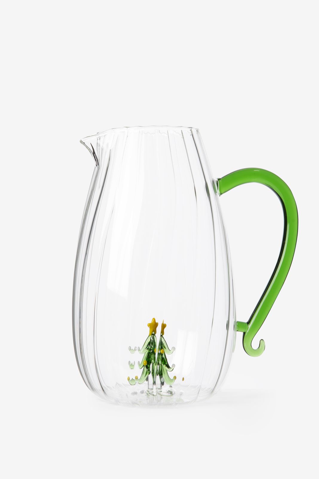 Glazen karaf met kerstboom van Sissy-Boy. De karaf heeft een groene handgreep en is verder transparant van glaswerk. Daarnaast heeft de karaf op de bodem een 3 dimensionaal kerstboompje voor een feestelijk gevoel. Wanneer je de karaf met water vult is het kerstboompje het best zichtbaar. Materiaal: 100% glas