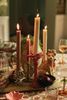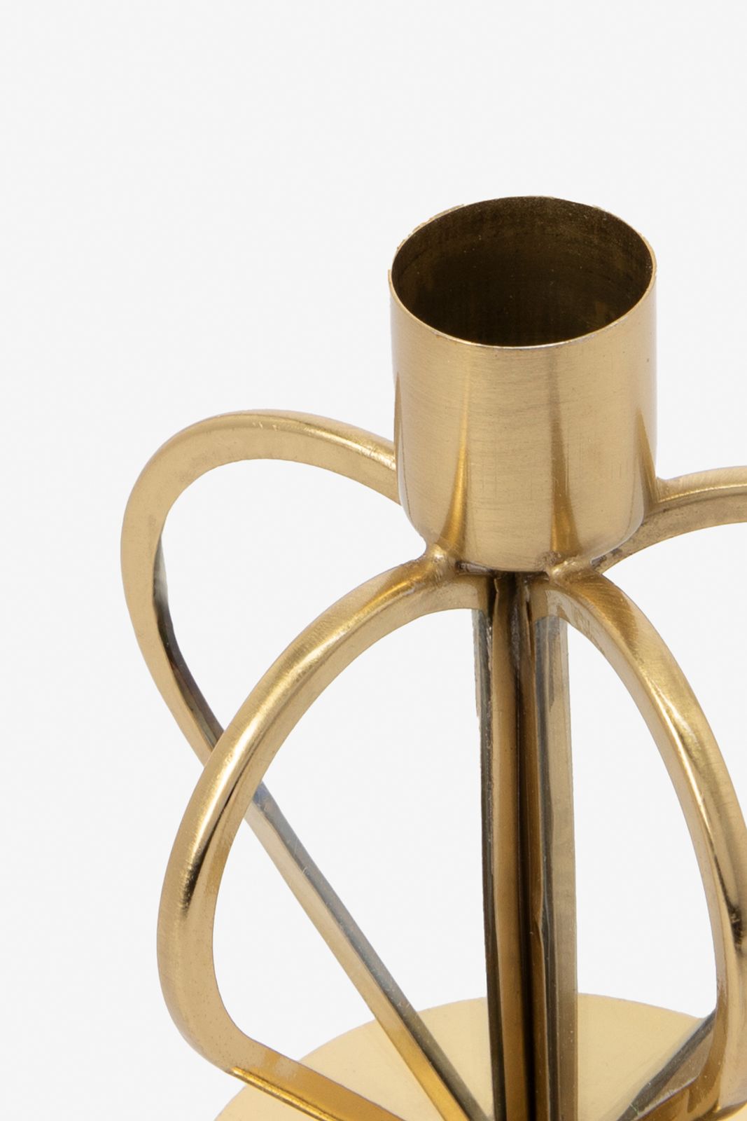 Gouden glazen kandelaar small in hart vorm van Sissy-Boy. De kandelaar heeft een gouden kleur en vier pootjes die samen een hartjes vorm maken. Aan de bovenzijde zit een houder om een kaars in te plaatsen. Afmetingen: 12 cm x 8 cm. Materiaal: 50% glas, 50% brass.