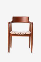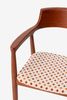 Houten eetkamerstoel giulia met print van Sissy-Boy De stoel is gemaakt van essenhout. Het geprinte kussen bestaat uit 70% polyester en 30% polyacryl. De stoel heeft een jaren 70 stijl kussen met een all-over ruitjes patroon in het rood en oranje. Het jacquard ruitjes patroon heeft een ingeweven stofkwaliteit en staan perfect om je eettafel. Afmeting: 80 x 57 x 50 cm. Hoogte armleuning: 67 cm.