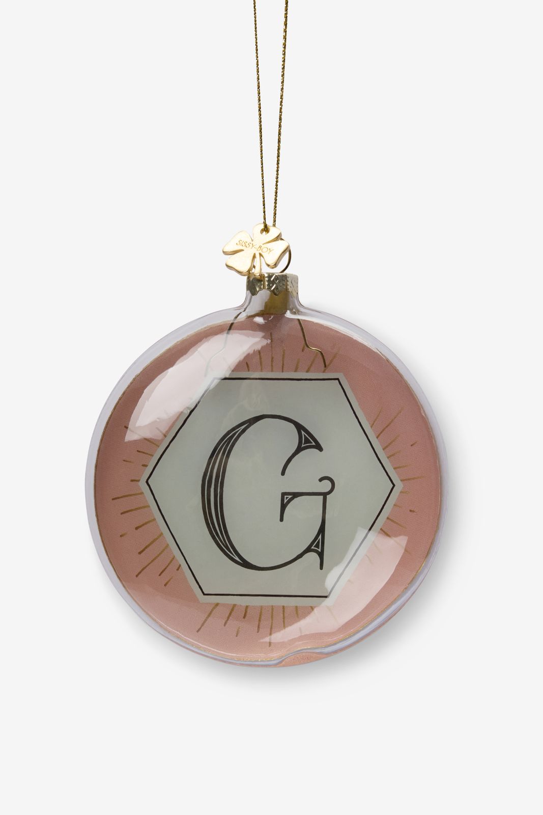 Kerstbal met de letter G van Sissy-Boy. De voorkant heeft een uniek ontwerp met een initiaal, de achterkant straalt met gouden glitters en is super leuk voor in je kerstboom. Materiaal: 100% glas