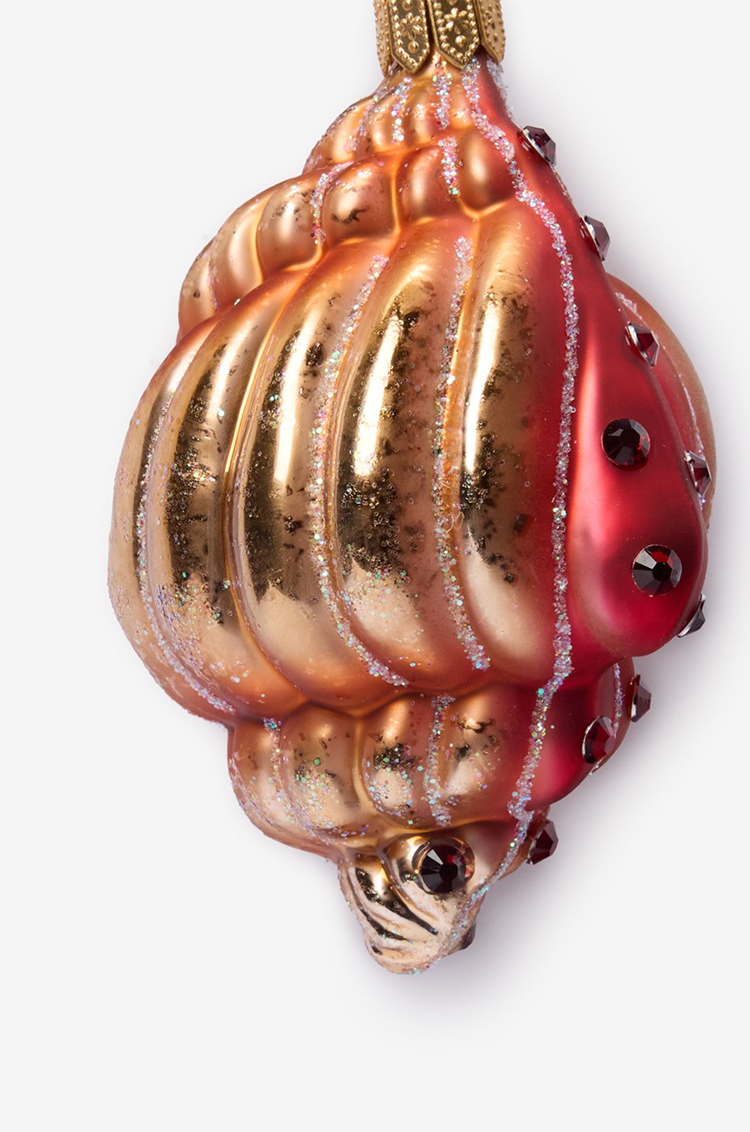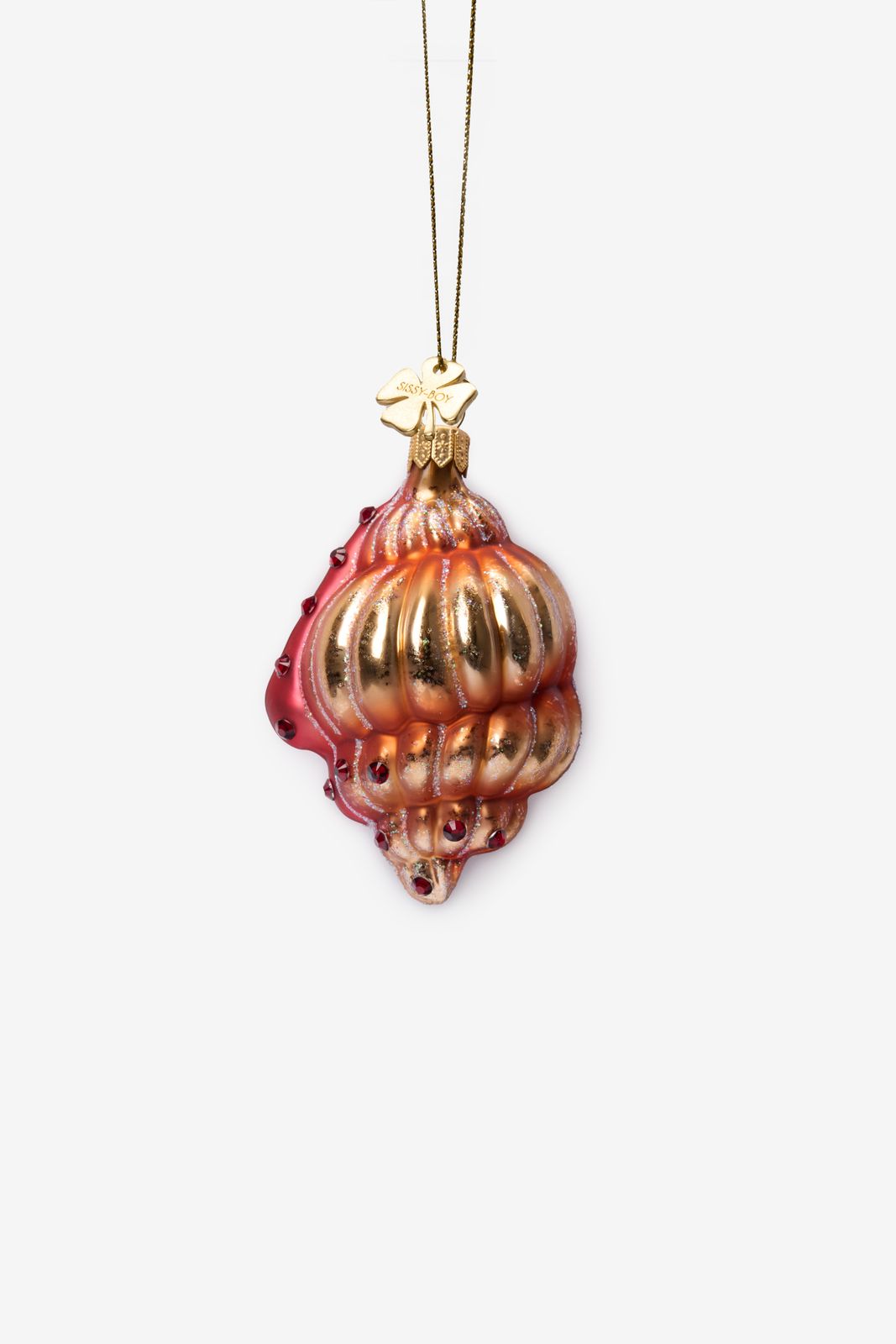 Kerstornament in de vorm van een schelp van Sissy-Boy. Het ornament heeft een oranje, rode en gouden kleur met de vorm van een schelp. De schelp kerstornament heeft een afmeting van 8 centimeter en is gemaakt van 100% glas.