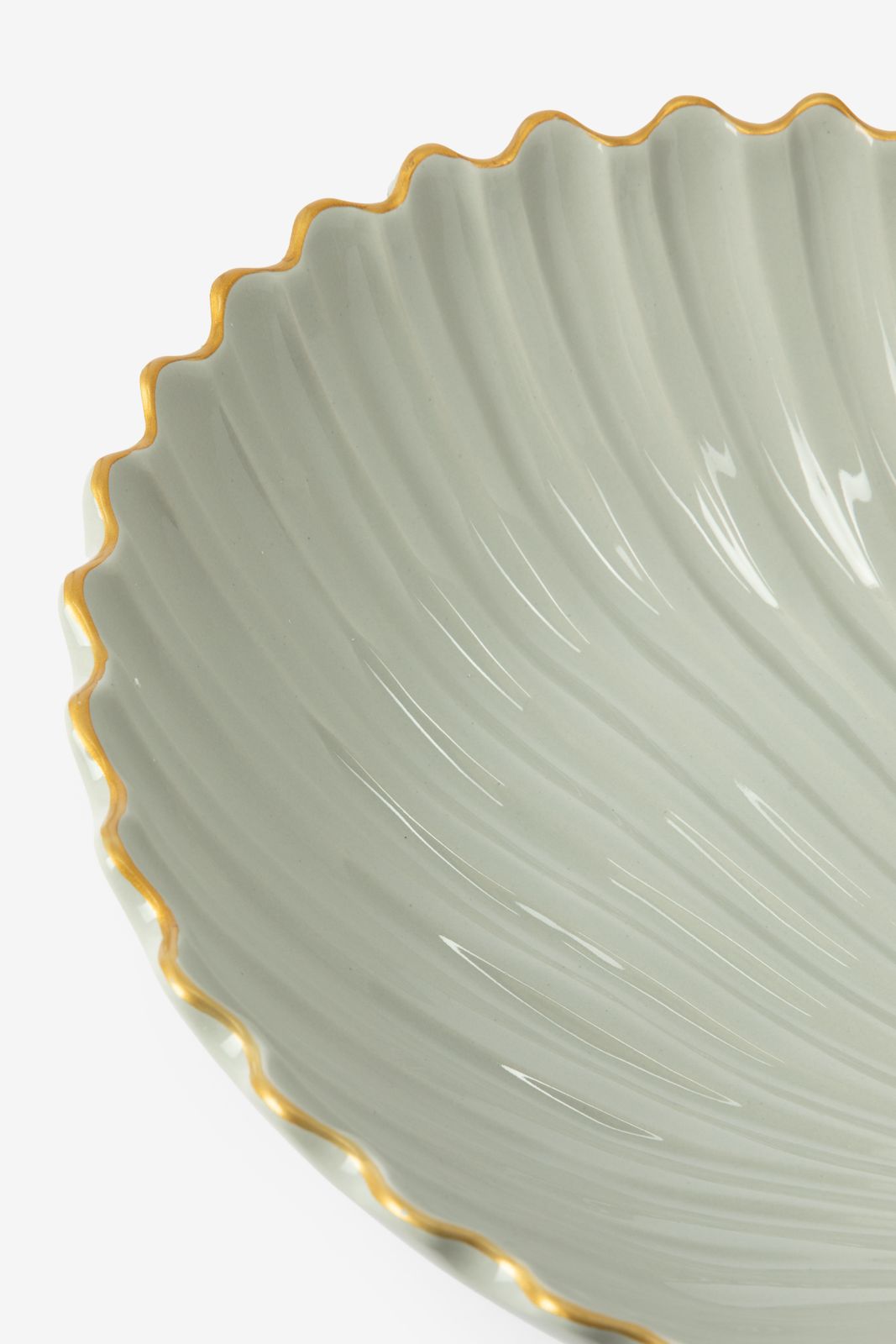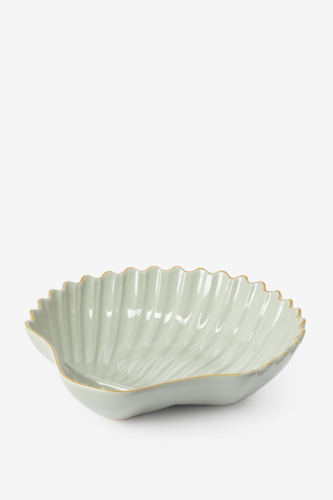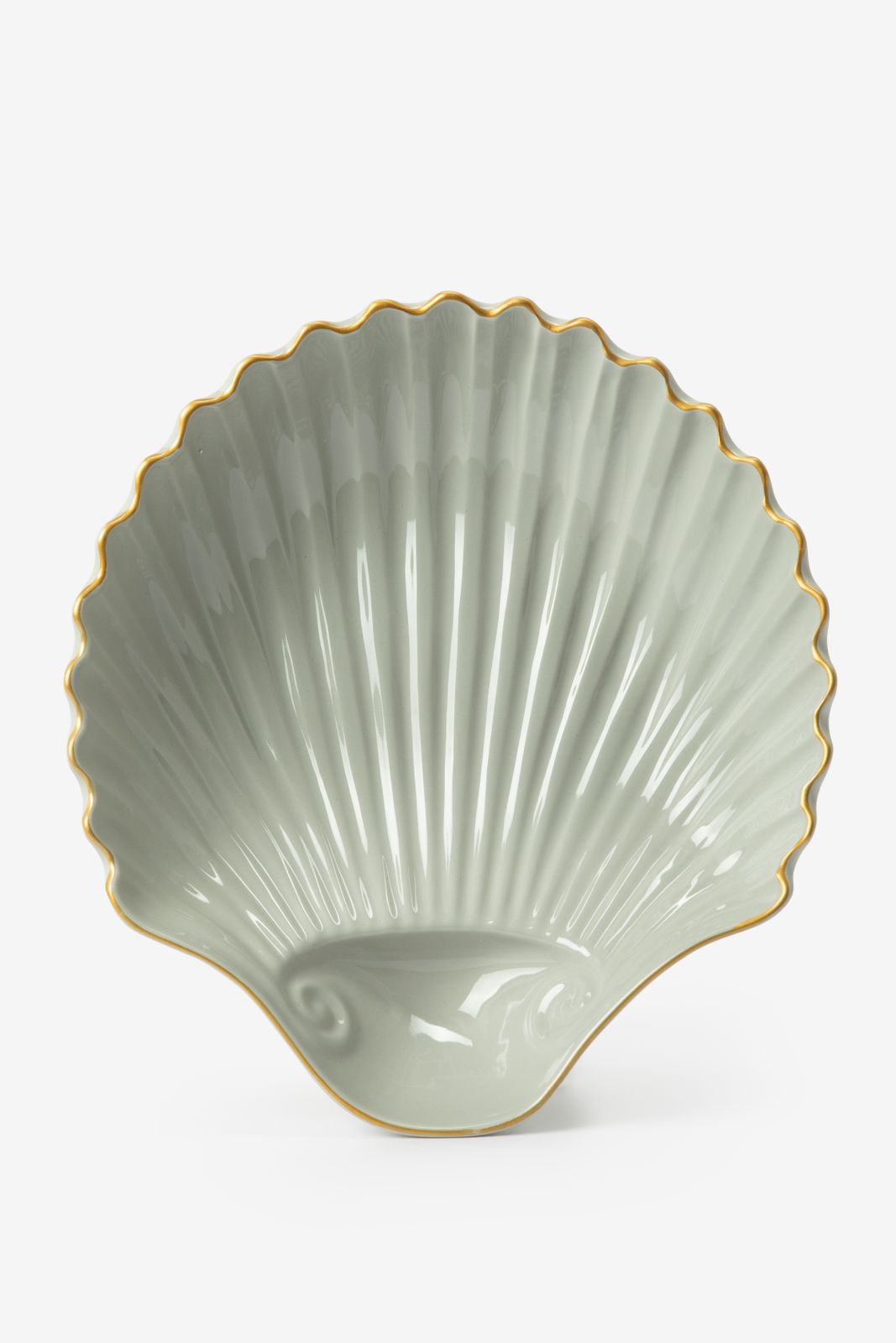 Lichtblauwe schelpenschaal van Sissy-Boy. De schelpvormige serveerschaal heeft een lichtblauwe kleur met een goudenrand. Daarnaast is het gemaakt van 100% keramiek. Afmetingen: 39 x 35,5 cm. Materiaal: 100% keramiek.