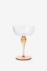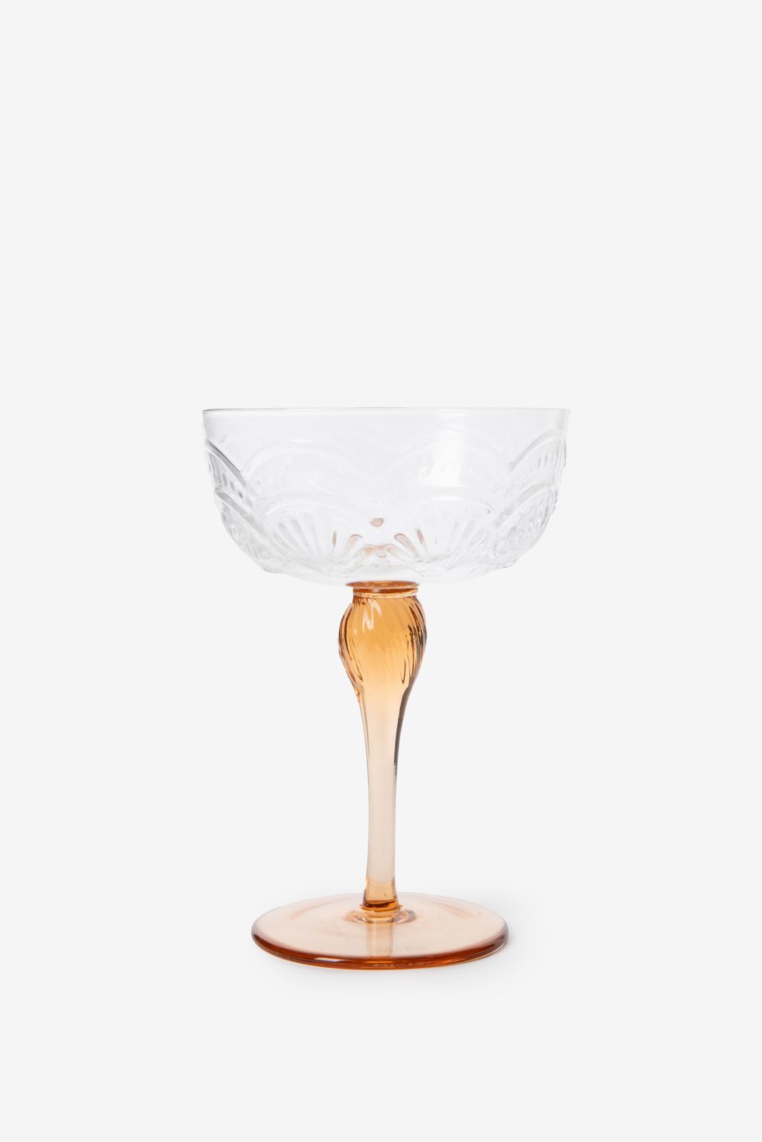 Lichtoranje champagnecoupe van Sissy-Boy. De glazen hebben een ronde coupe met sierlijke details en een lichtoranje onderstel. Let op: online kun je dit artikel alleen in een set van 4 kopen. Wil je liever 1 stuk? Ga dan langs in één van onze winkels. Materiaal: 100% glas.